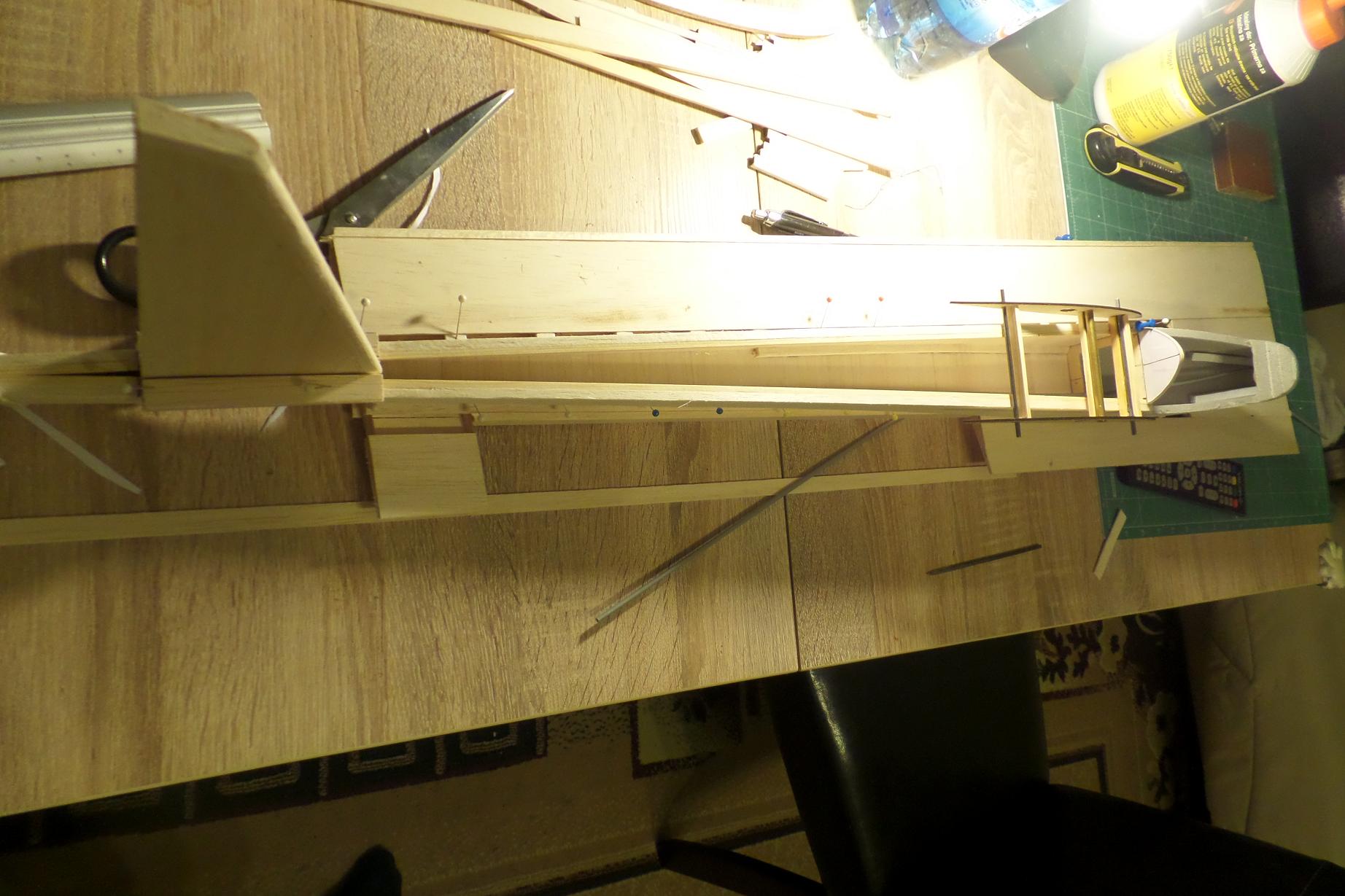 Wczoraj wkleiłem centropłat, więc dziś trzeba było zająć się górą kadłuba.