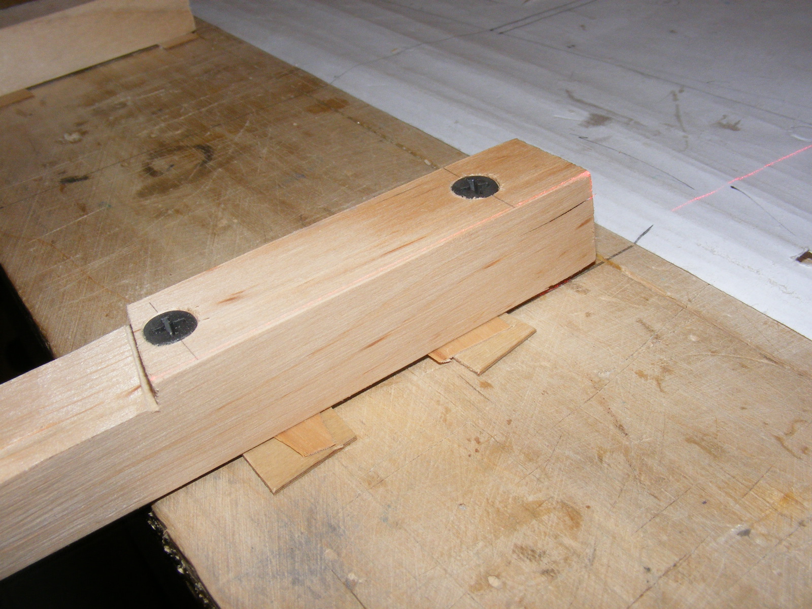 Podłużnice tyłu kadłuba to sosna 5 x 5 mm. Podłużnice przodu ze względu na znaczne wygięcie zarówno w płaszczyźnie poziomej jak i pionowej wykonałem metodą lamelowania z trzech listew 2 x 5 mm.