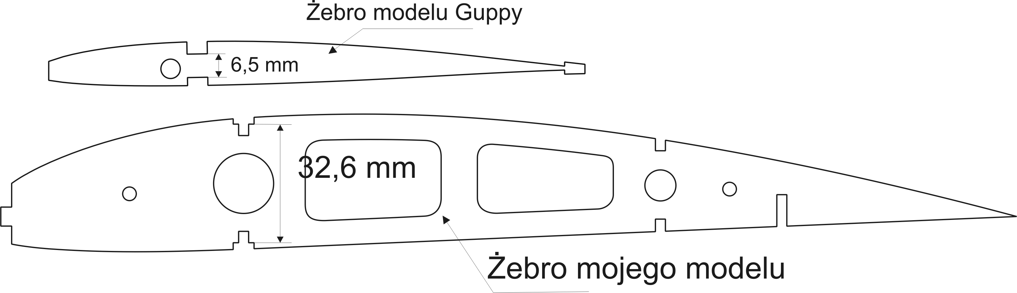 Bez względu jaki Kolega zastosuje klej powierzchnia styku dźwigara z żebrem wynosi 1,5 mm. Żebro ma słoje wzdłuż, czyli mało wytrzymała konstrukcja, bo przy gwałtownym ruchu dźwigar zostaje oderwany wraz z częścią żebra.