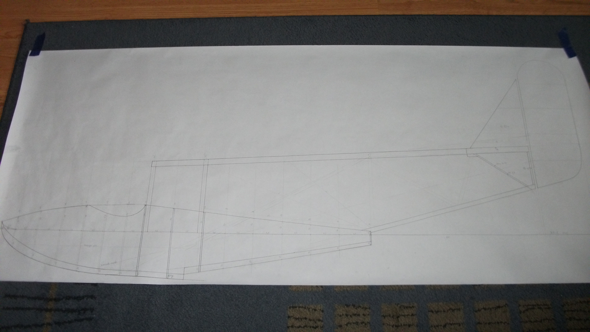 Rysunek modelu wykreślony na papierze. Warsztatowy.