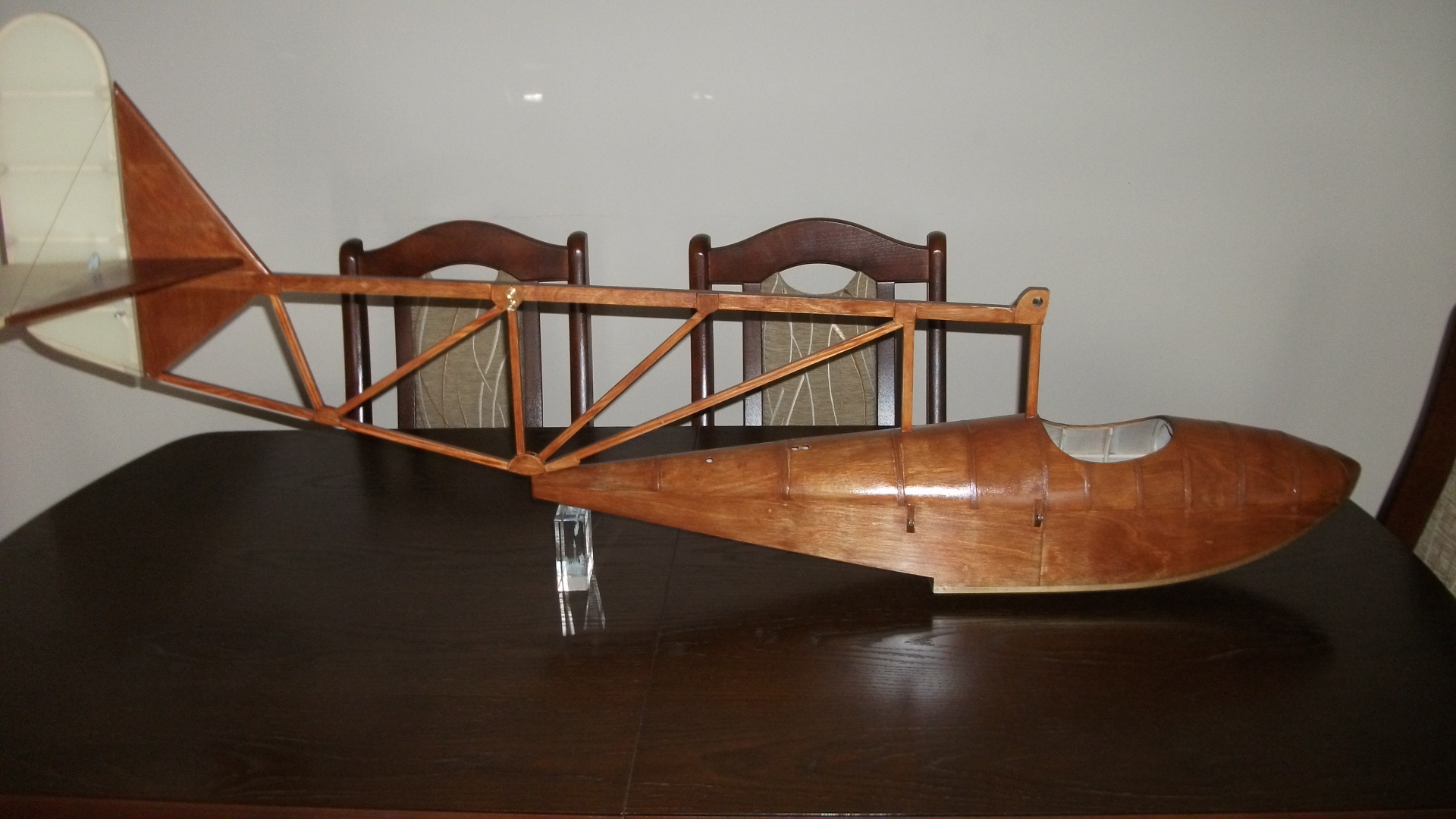 MT-1 dostał resztę poszycia sklejkowego,plus bejca i lakier.