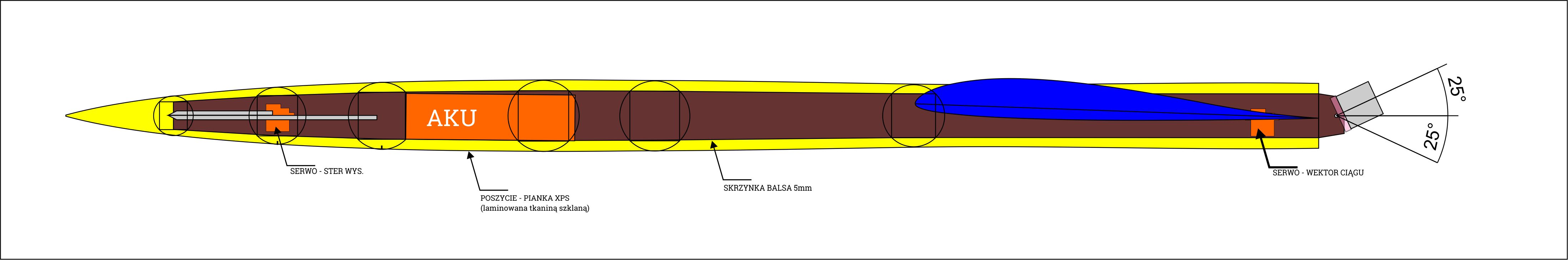 Zmieniłem trochę kształt kadłuba na bardziej opływowy - szkielet kadłuba będzie zrobiony ze skrzynki balsowej 5mm obudowanej pianką XPS i zalaminowany tkaniną szklaną.