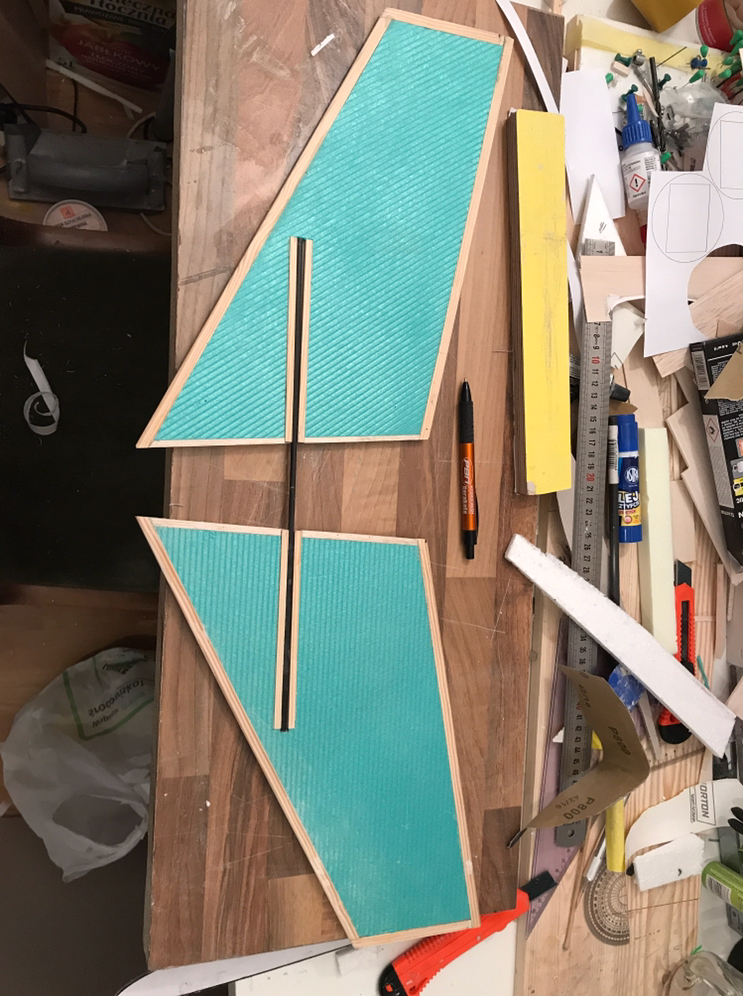 Witaj Molej, stateczniki poziome będą napędzane i będą się poruszały jako jedna powierzchnia. Zamierzam je wykonać z dwóch deseczek balsowych 5 mm osadzonych na rurce węglowej 5 mm. Co do skrzydła to będzie pokryte tkaniną szklaną 25g/m2 klejoną na EZE KOTE. Zastanawiam się czy gramatura tkaniny nie będzie za mała? Czy lepiej użyć 40g lub więcej?