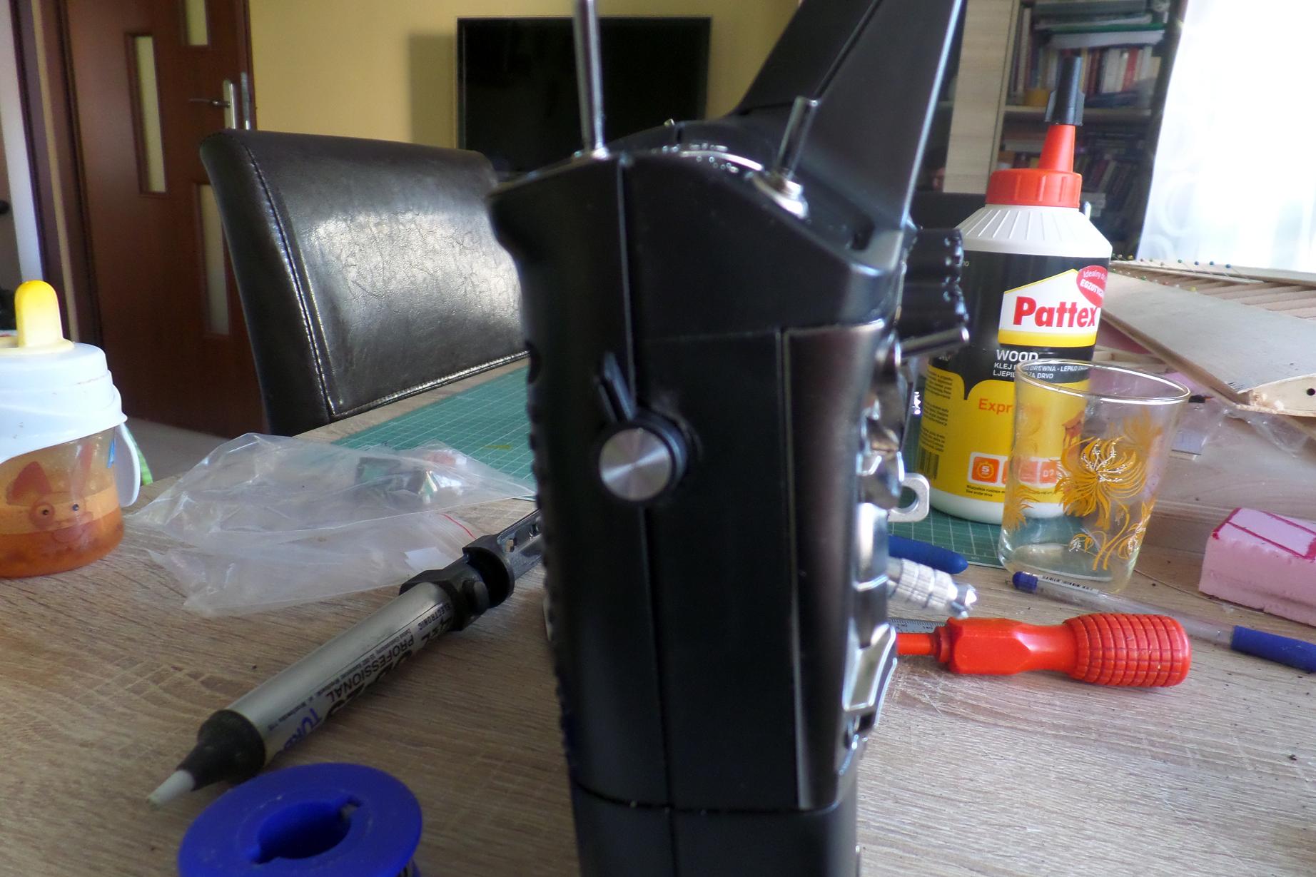 Postanowiłem przerobić moją 9XR tak aby miała jeden slider. Odbyło się to kosztem jednego z potencjometrów.