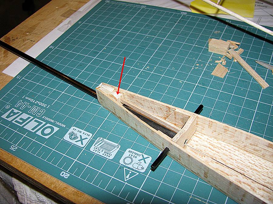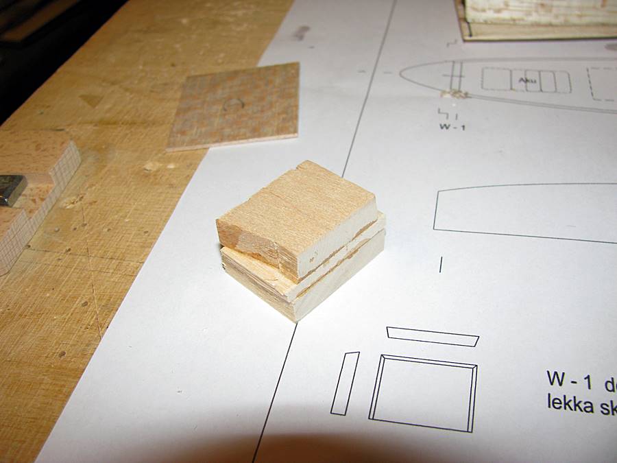 Przód kadłuba - wykonany z kawałków balsy 8 mm i 3 mm:
