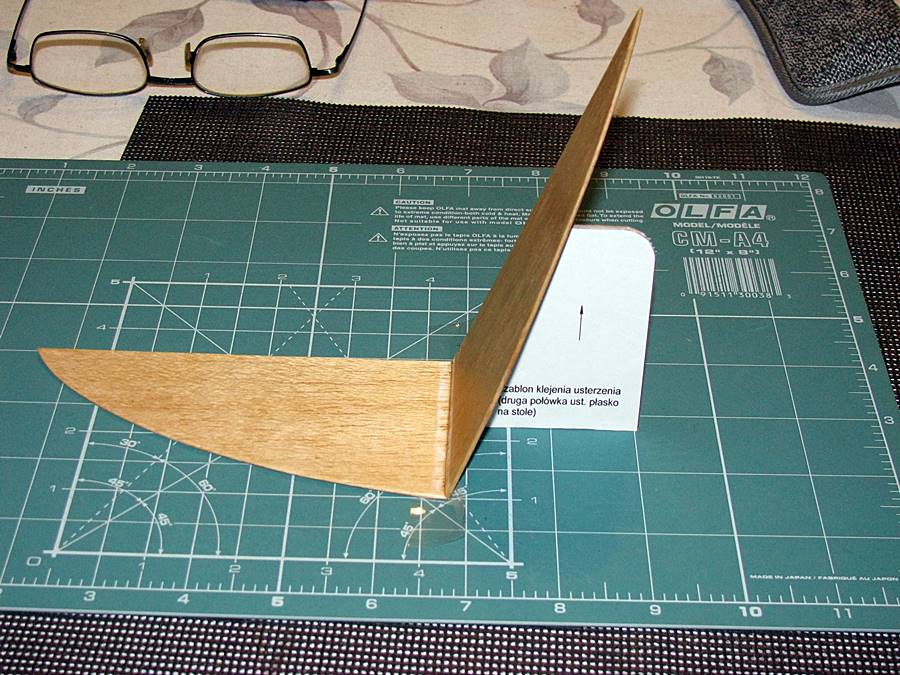 Dalej przyklejenie "burt" kadłuba - balsa 1,5 mm. Dodatkowo zrobiłem prosty szablon, żeby boki kadłuba przykleić z odpowiednim wygieciem. Klej - średni CA: