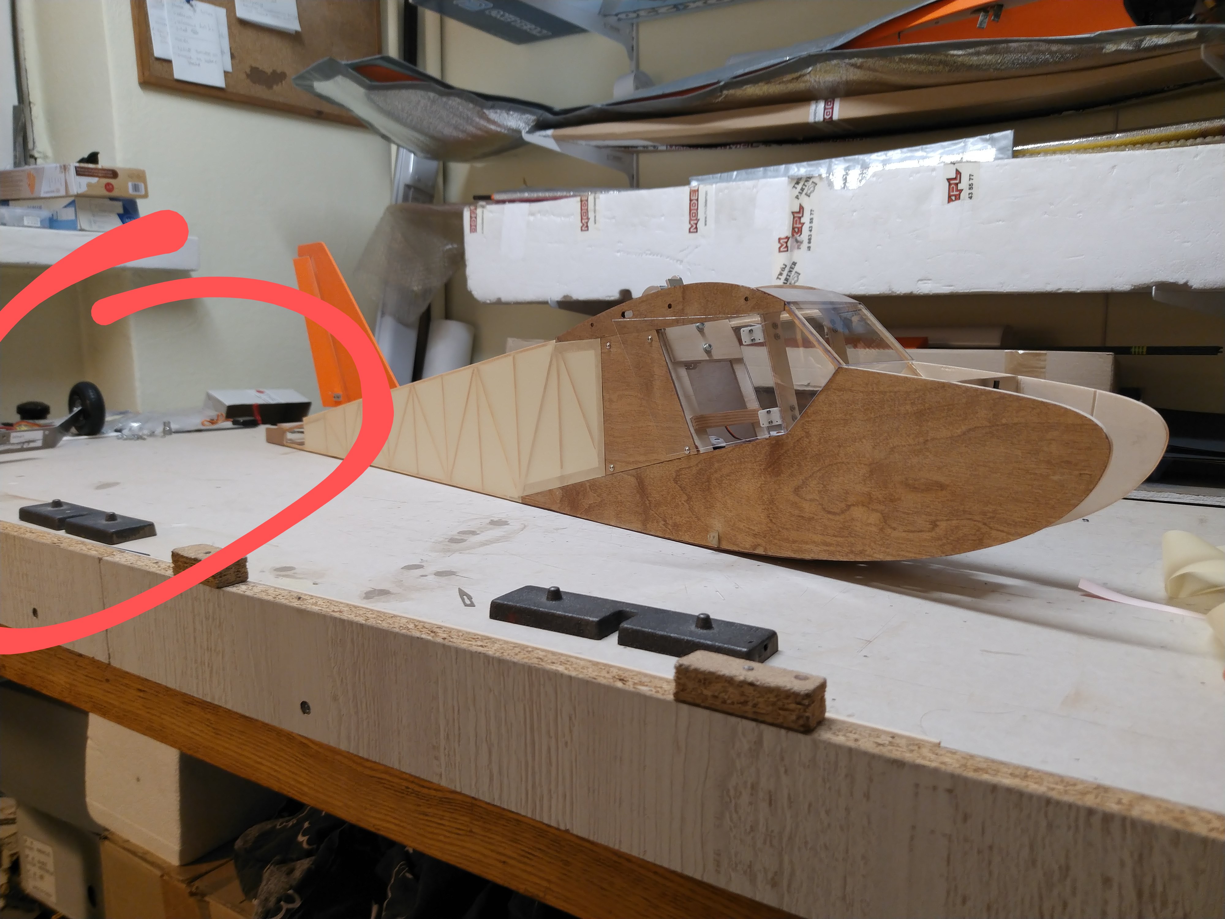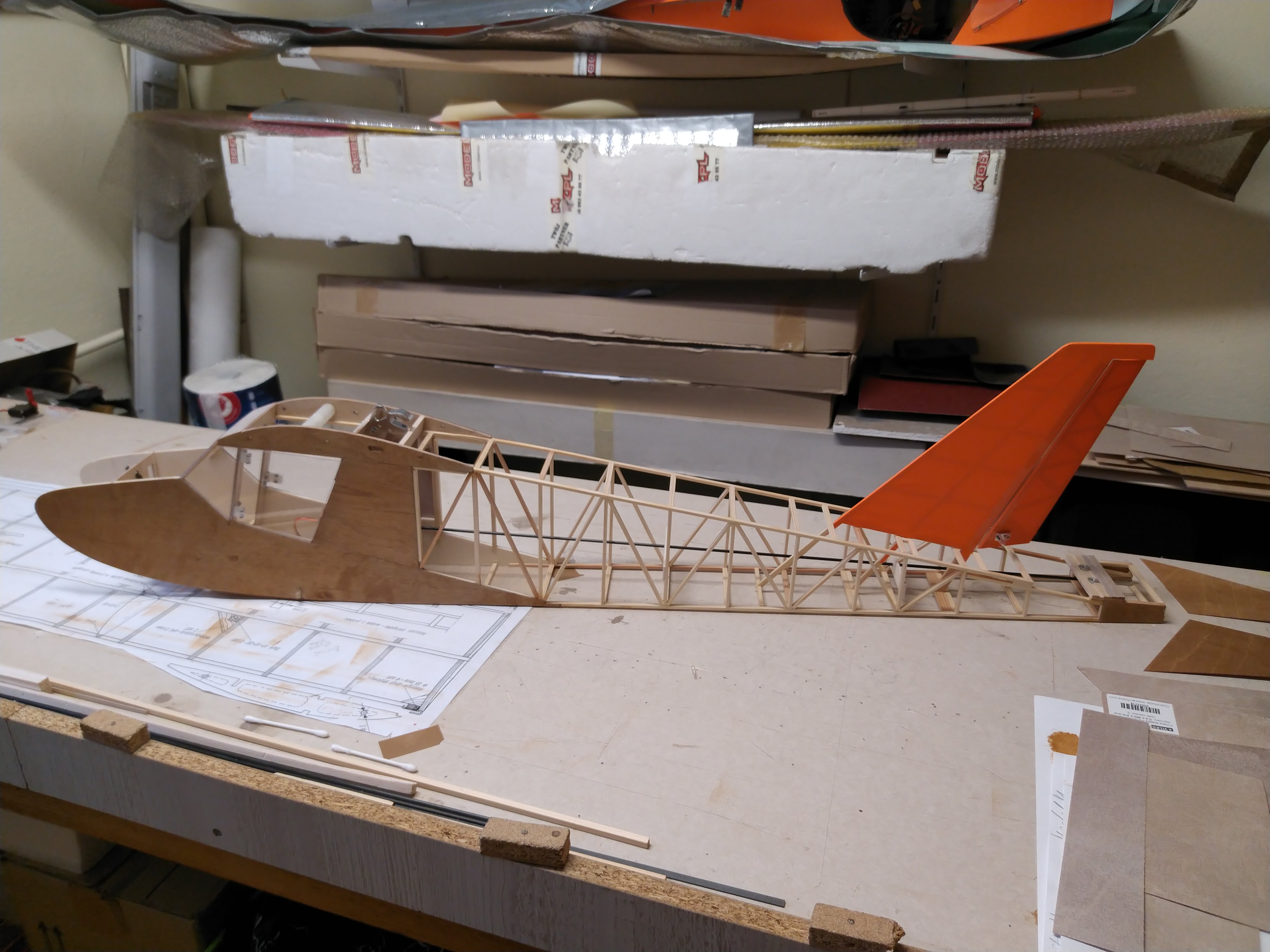 Zostały do zrobienia klapki zamykające i płoza z tyłu. Do lotu z pakietem 3S/3200 mAh powinien mieć około 1900 gram.