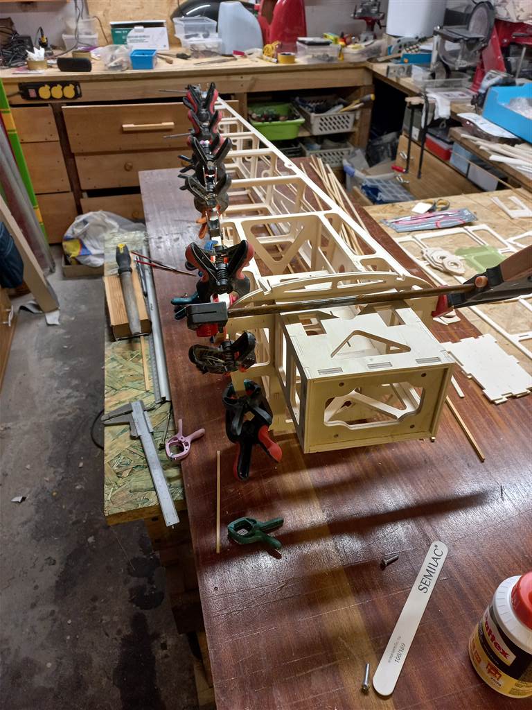 Zastanawiałem się nad wykorzystaniem z rozbitka statecznika pionowego i grabu , na upartego można było by te elementy wykorzystać. Ale postanowiłem zrobić je na nowo , odzyskam ster kierunku ale żeby dostać się do zawiasów muszę rozwalić statecznik a przez to garb też będzie musiał być nowy . Kabinka węglowa z rozbitka ocalała jak i podwozie ( coś czuje że na jednym się nie skończy )