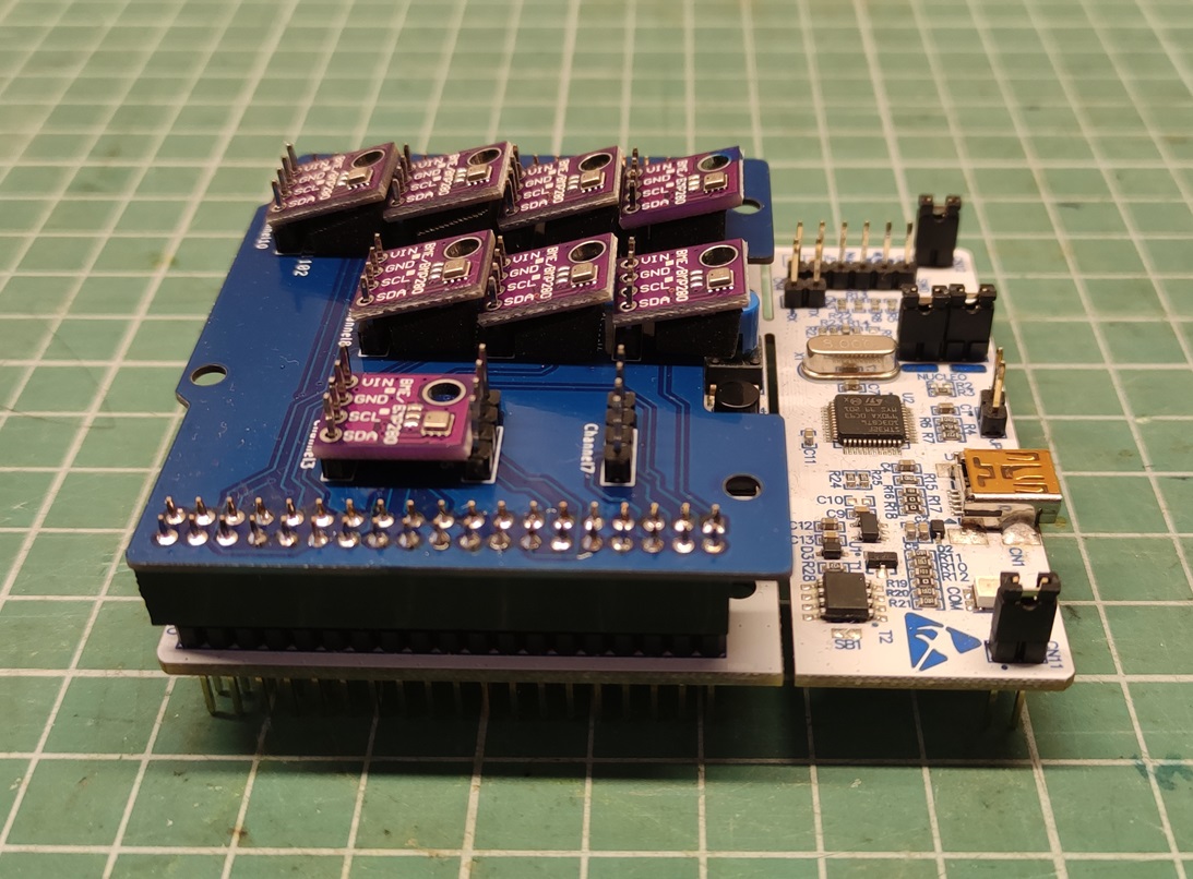 Oprócz prototypów urządzenia zaprojektowałem i wykonałem także płytkę do testowania sensorów.