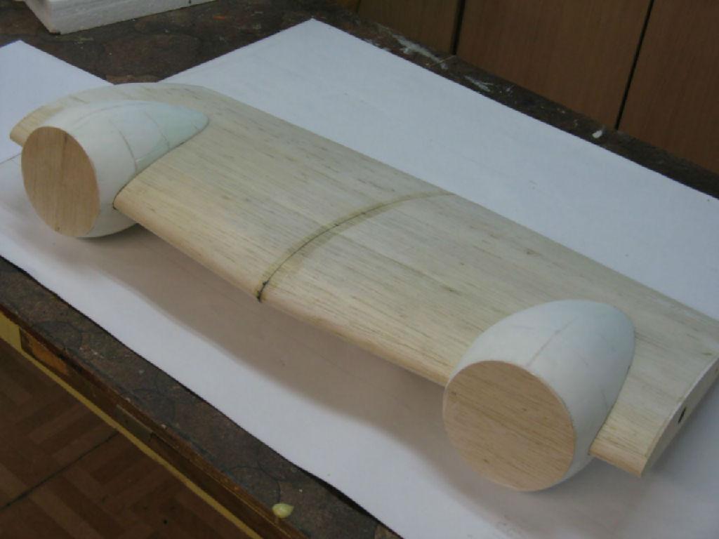 Zmieniła mi się trochę koncepcja napędu steru kierunku, więc musiałem zrobić nowe, grubsze stateczniki pionowe. Na zdjęciu widać różnicę. Poprzednie stateczniki miały 7,5mm grubości, nowe - 15mm, aby mogły zmieścić się serwa.