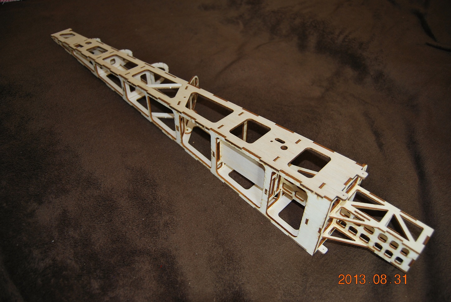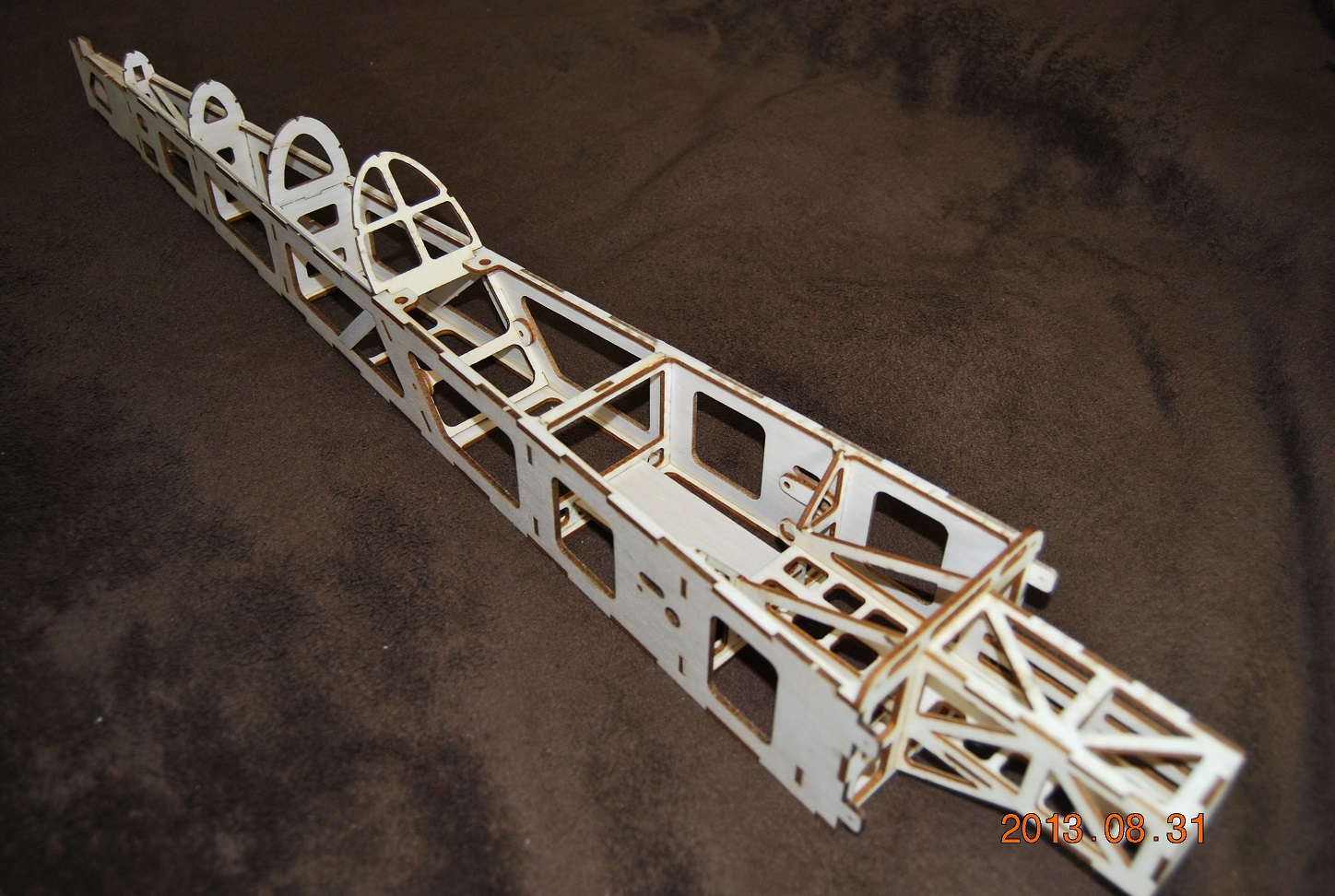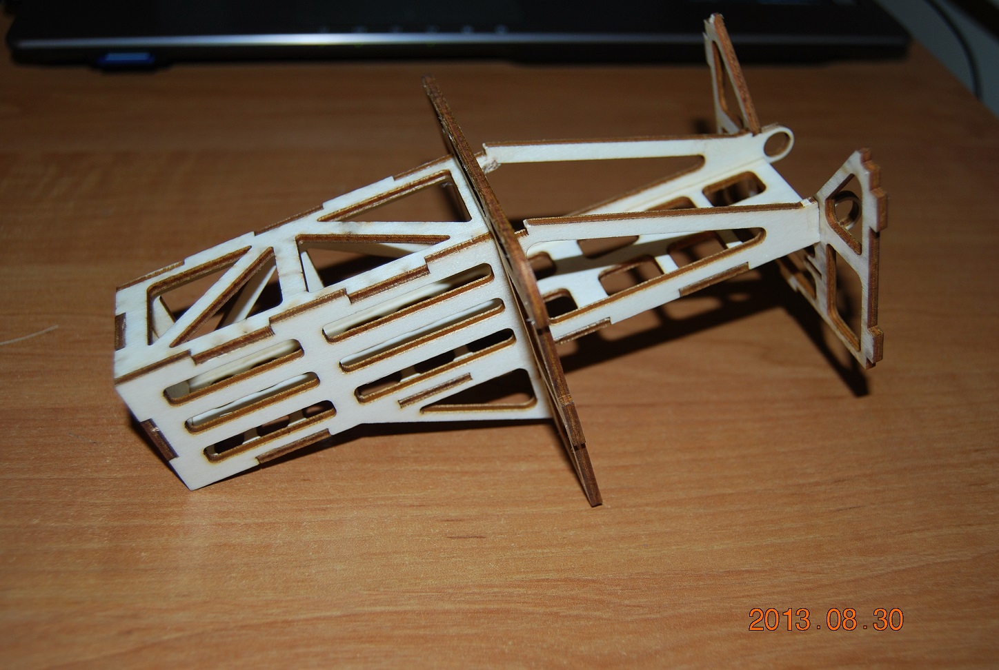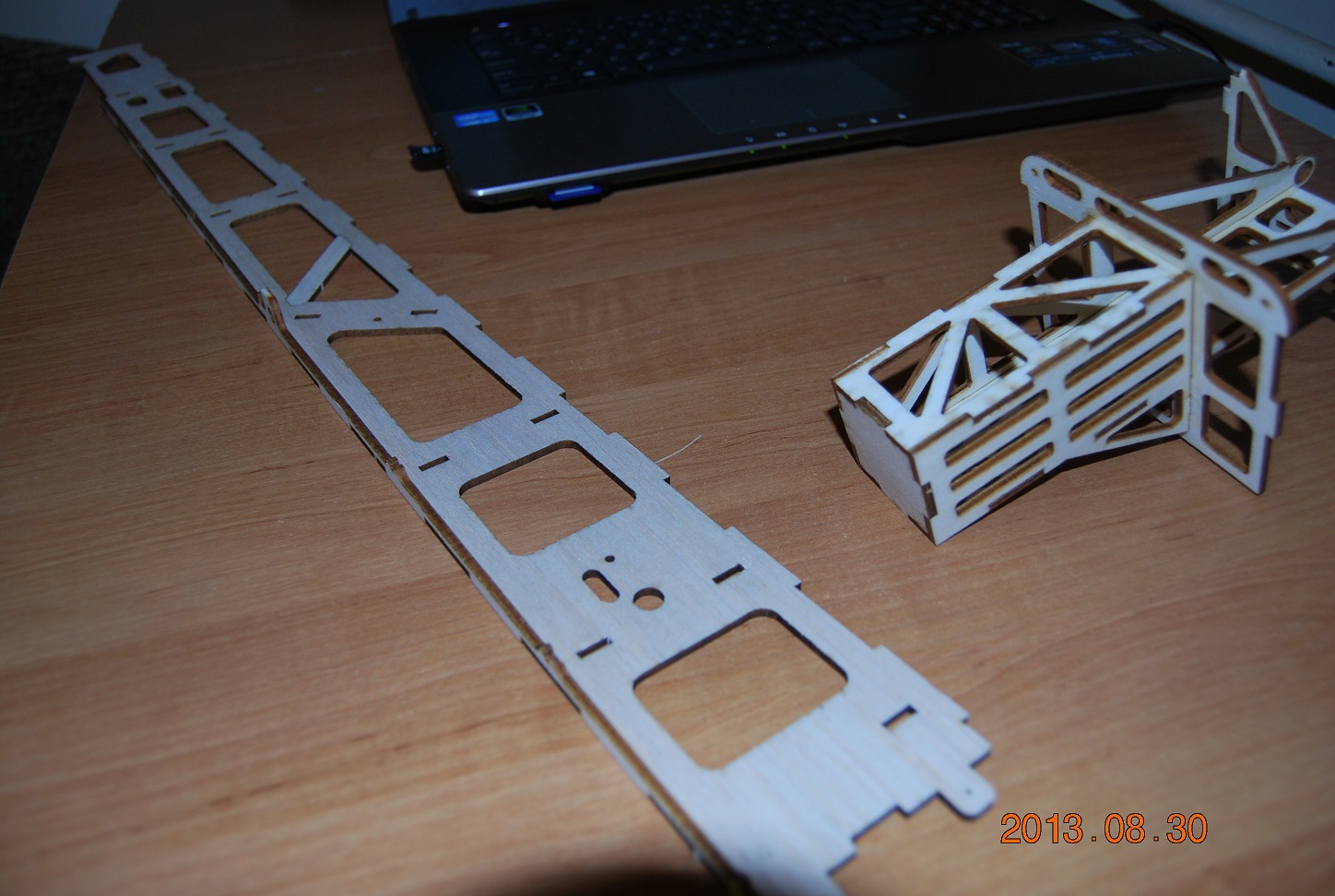 Chwile zeszło nim odebrałem formatki ale w końcu są. Jakość cięcia oczywiście jak przystało na barwyreklamy.pl - bardzo wysoka. złożyłem i skleiłem domek silnika i dwie wręgi.Domek silnika jest bardzo sztywny, w pierwszej wersji trzeba go było usztywniać węglem. Pasowanie elementów jest dość ciasne więc model moża złożyć bez kleju a potem pozalewać łączenia klejem. Na tą chwilę wyglada to tak jak na zdjęciach. Z powodów lokalowych nie bardzo mam mozliwość szlifowania balsy ale jakoś dam radę.
