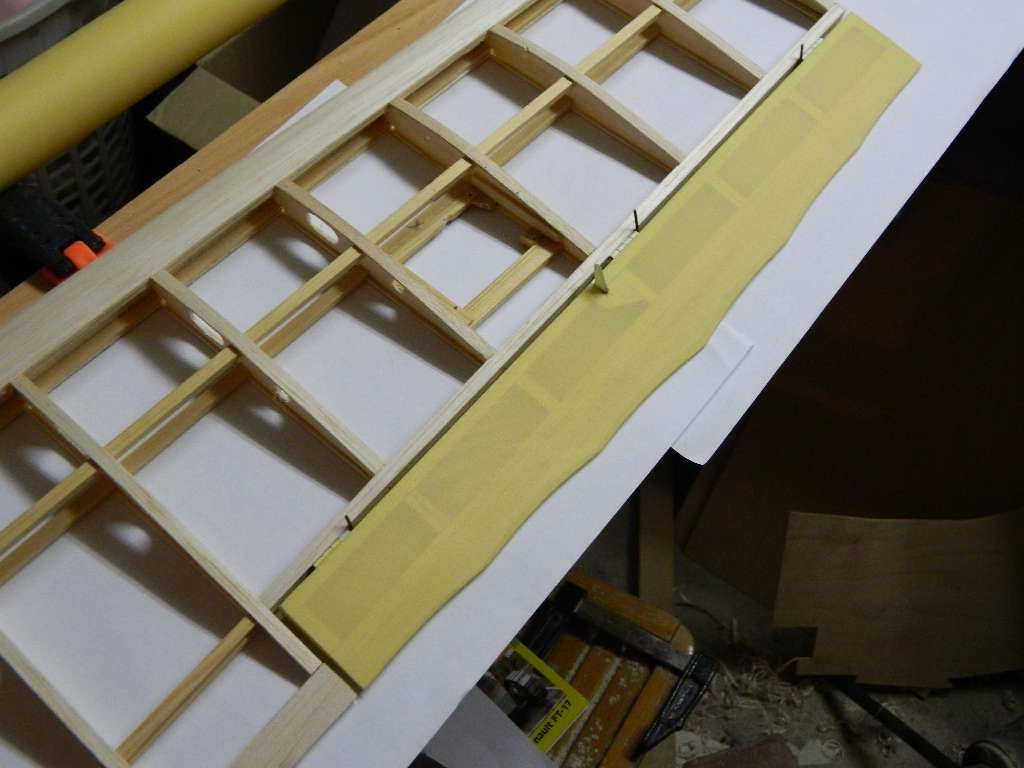 Oczywiście nie wytrzymałem i musiałem coś okleić..... lotka prawego płata, zrobiona całkowicie, poszła na pierwszy ogień :)