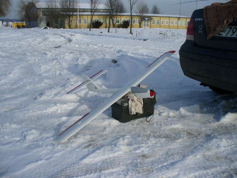 Widzę, że chłopaków "nosi"....to dobrze :) . Niestety pomimo dodatniej temperatury i prawie zerowego wiatru, loty są niemożliwe. Na lotnisku zalega 20 cm warstwa śniegu......Wszyscy mamy dość tej pogody, żal mi tyłek ściska jak patrzę na szybowce wiszące na hakach w piwnicy, wszystko przygotowane, poustawiane, wypieszczone, tylko latać ;)