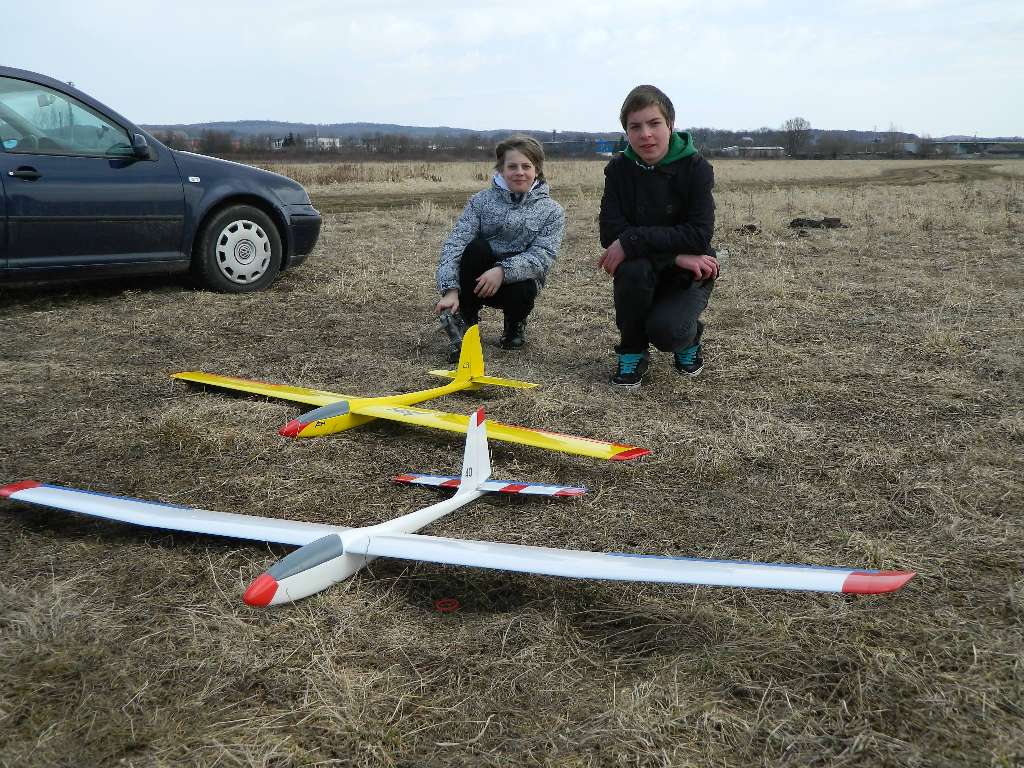 Dzisiaj delikatnie rozpoczęliśmy sezon szybowcowy 2013. Pogada taka sobie, silny wiatr, zimno ale jak sie później okazało nawet niezła termika. Chłopaki, Czarek i Karol, zrobili po parę lotow "40-stką" a Czarek polatał też ADW-1Z :) , ja oczywiście latałem oboma szybowcami. Była termika po parę minut, ale przedewszystkim przypomnienie sobie po długiej przerwie nawyków, radzili sobie bardzo dobrze :D . Nie było problemów ze startem , lotem i szczególnie z zaplanowaniem lądowania.