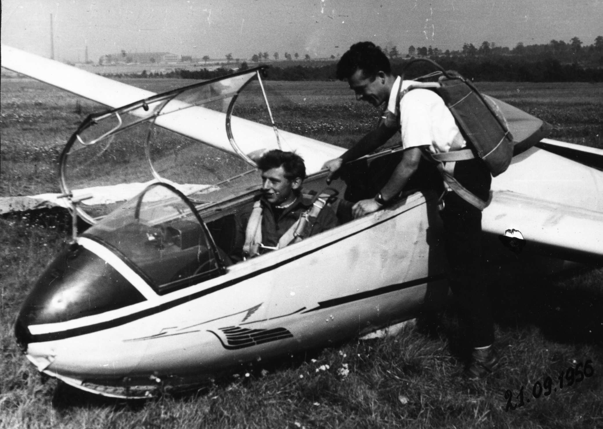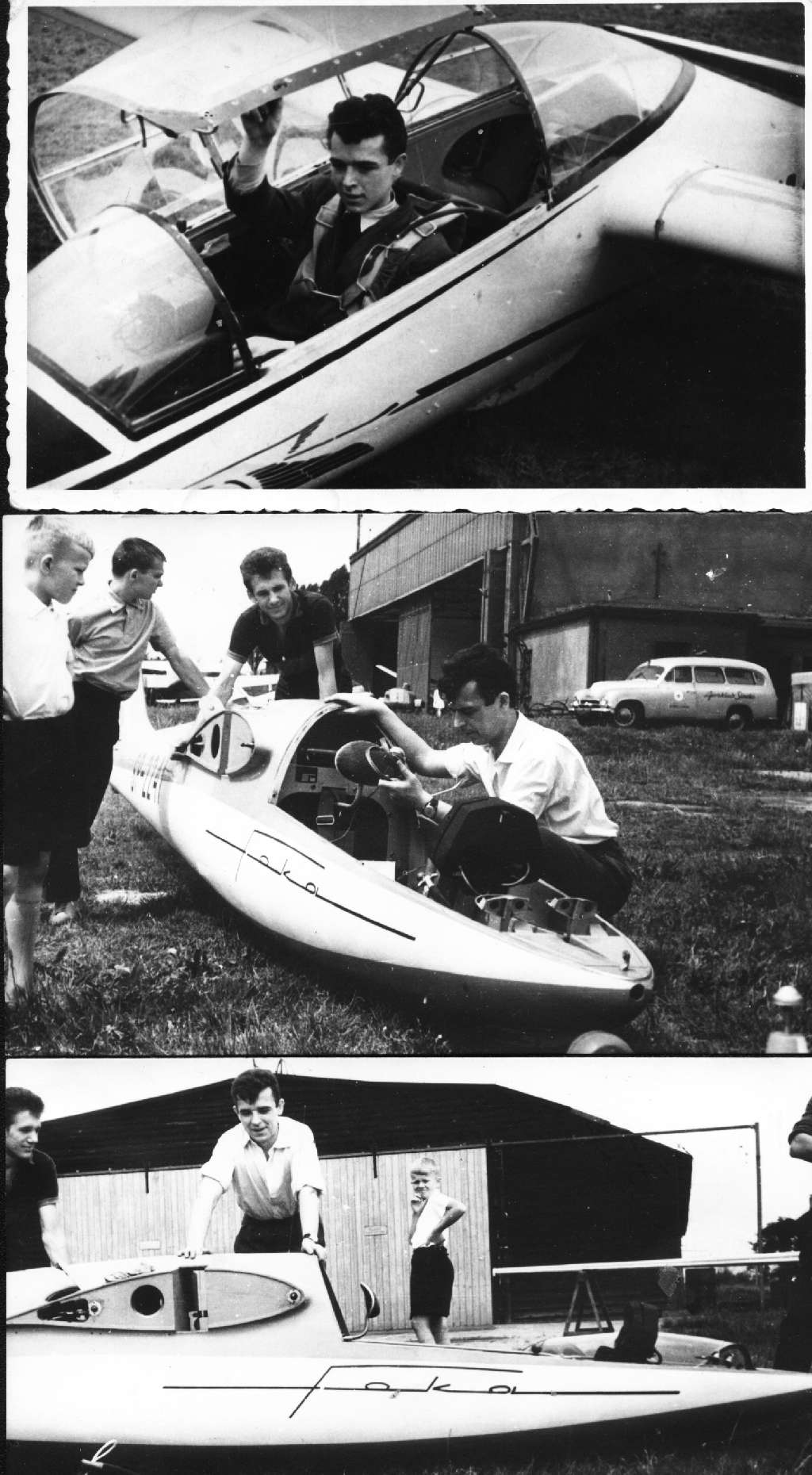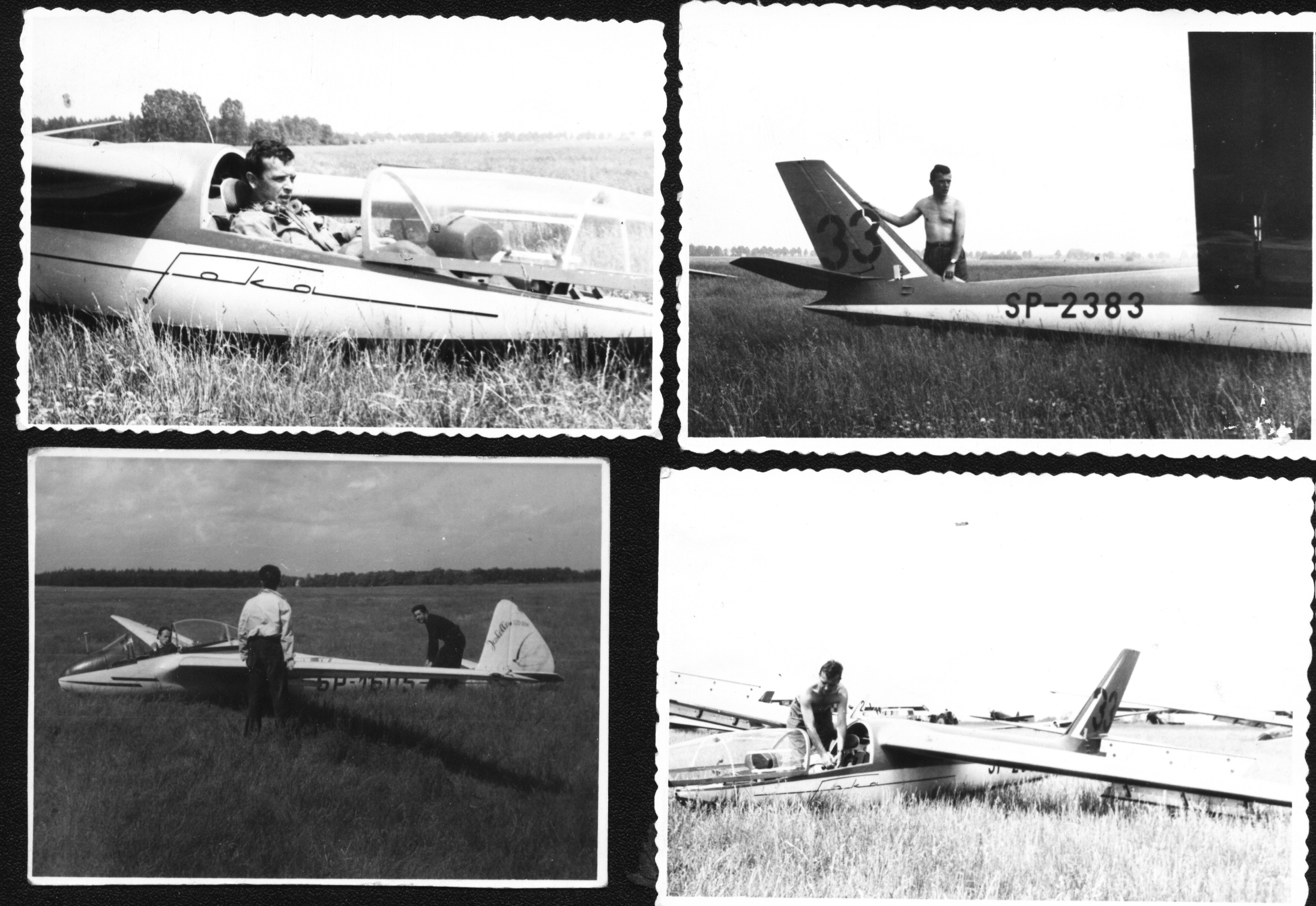 Pierwsze dwie fotografie wykonane sa na lotnisku Aeroklubu Śląskiego w Katowicach . Wsiadam do II kabiny bociana a na drugim zdjęciu... wysyłam kolegę na wygibusy na Jastrzębiu. Następne zdięcia wykonano na lotnisku A. Opolskiego gdzie braliśmy udział w pokazach w Nysie ( 1960r.). Kręciłem akrobację na tym Jastrzębiu. :o