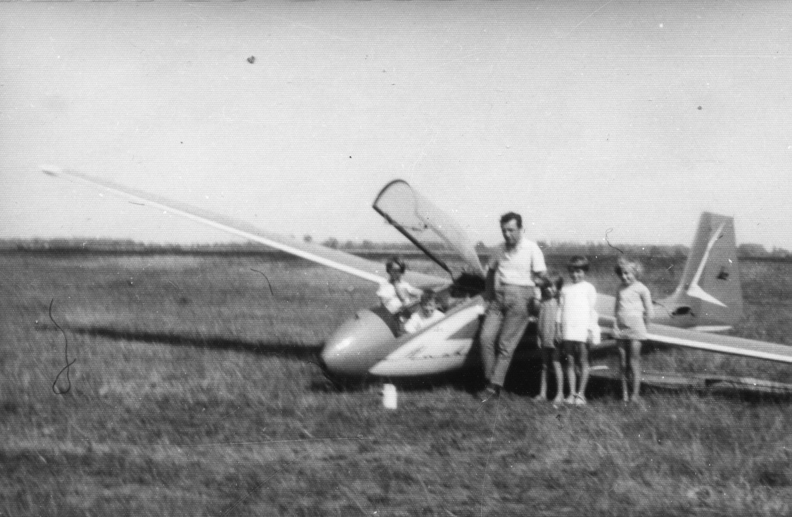 Zdjęcie 5... ja przy skrzydle Jaskółki, Lisie Kąty, lata 60- te.