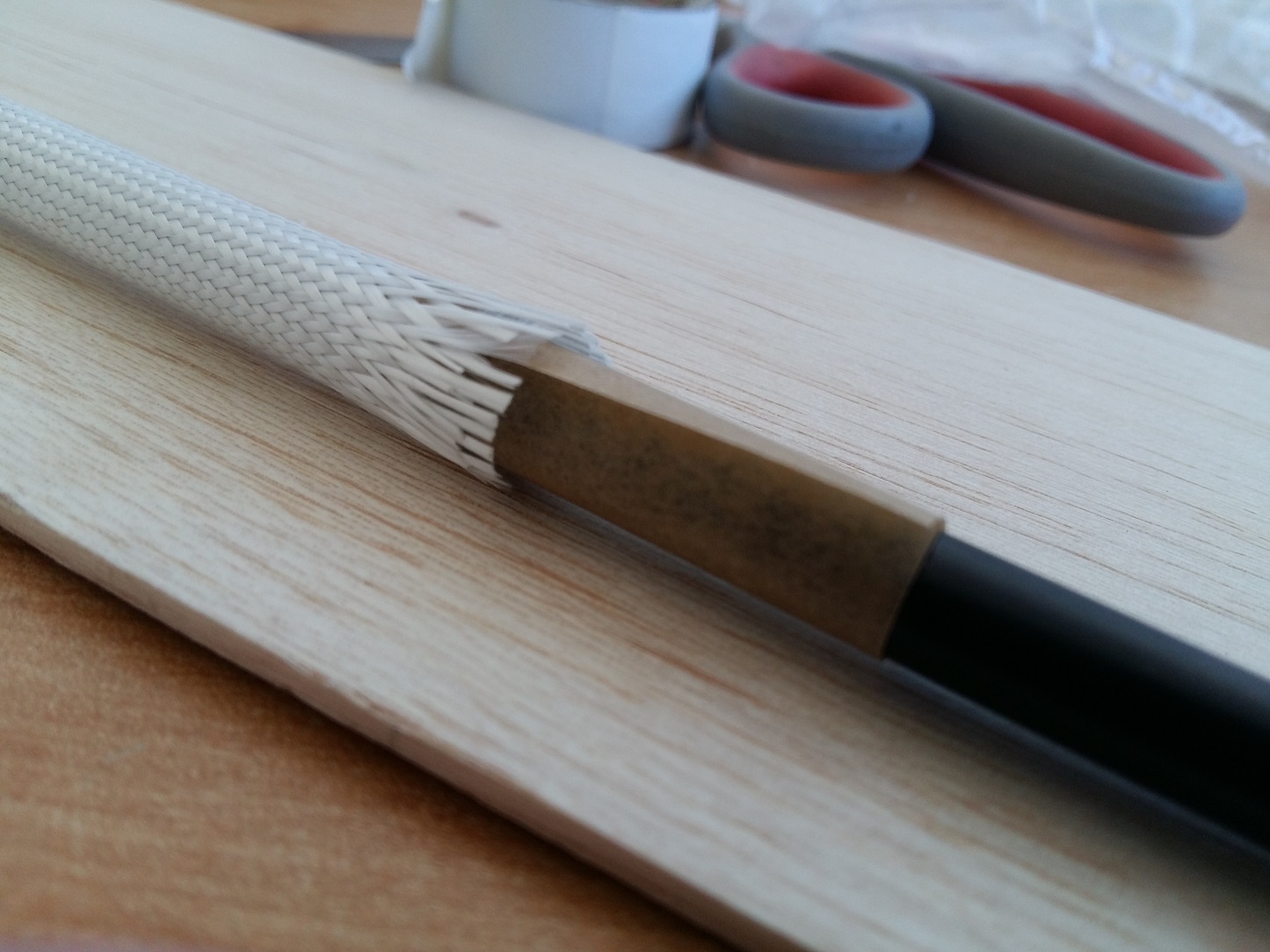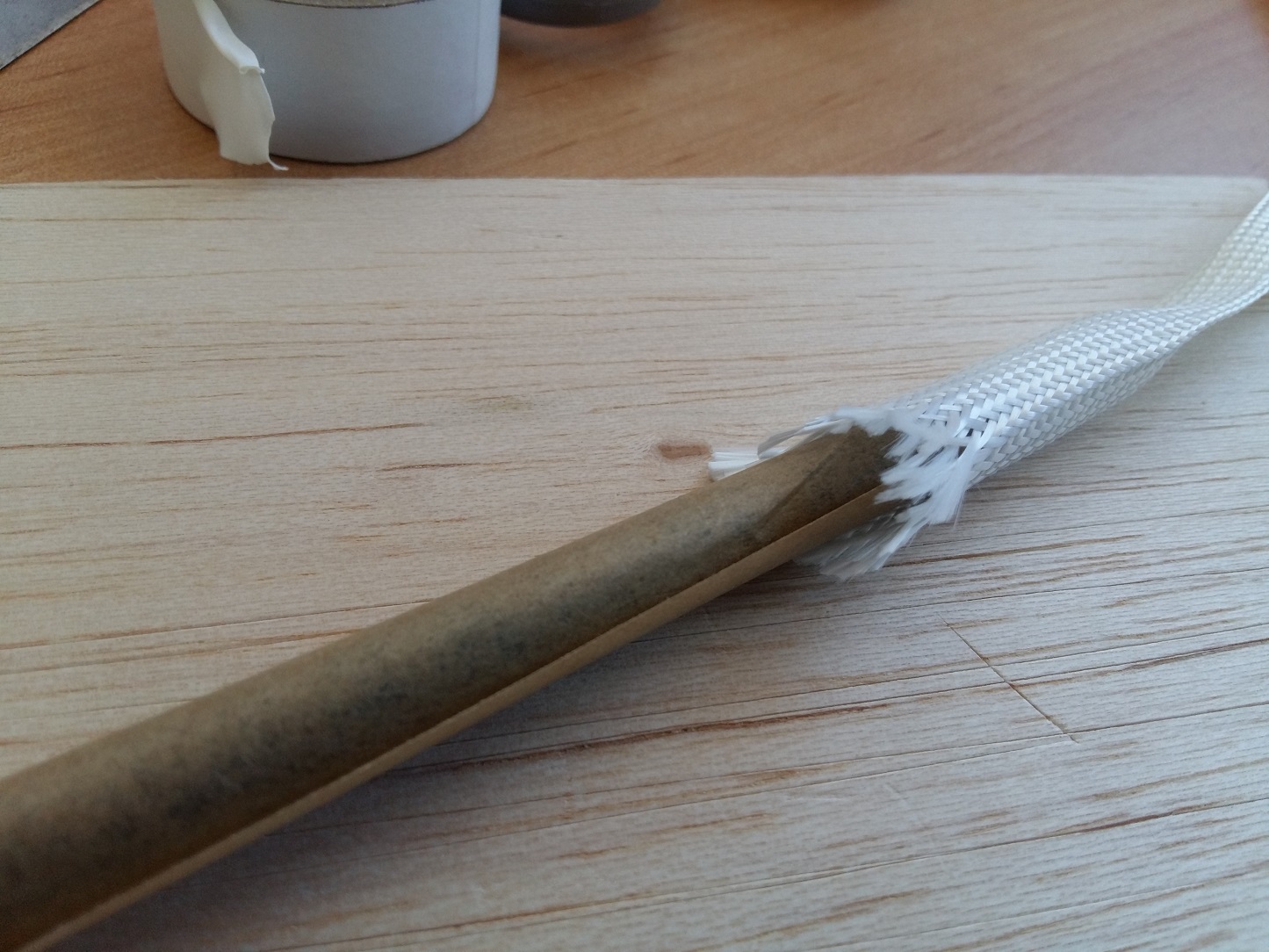 Wykonanie rurek z laminatu na kieszenie łącznika to jest to od czego robi się słabo każdemu z nas już na samą myśl. Nie inaczej było u mnie. Po iluś tam próbach zwijania z tkanin zmieniłem taktykę i zacząłem wykorzystywać rękawy szklane. Od razu napiszę, że rękawy godne uwagi ma w ofercie Havel Composites a może je również kupić w Modelemax co ja uczyniłem. Zaletą akurat tych rękawów jest gęsty splot. Ten rękaw który ja użyłem pozwala na wykonanie rurek od 8 do 16mm.