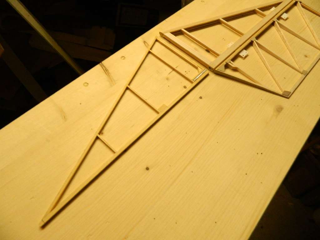 Zbudowałem jedną połowę usterzenia poziomego. Bogatszy o doświadczenia zdobyte przy budowie CW-1, znacznie wzmocniłem konstrukcję całego usterzenia, szczególnie steru wysokości. Ale pokolei.