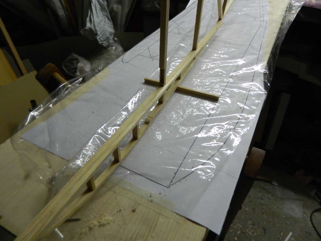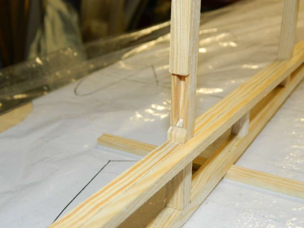 Pionowe elementy wzmacniające skrzynkę kadłubową z sosny 8x4 i balsy, wzdłuż poziomej listwy spinającej skrzynkę kadłuba przykleiłem listwę sosnową 5x5. Zresztą wszystko widać na zdjęciach.
