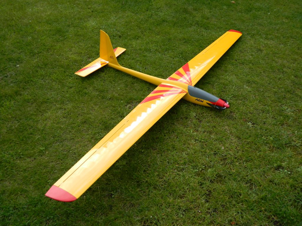 Krótkie podsumowanie drugiego dnia oblotów. Zmieniłem śmigło na 10x6, nie widzę istotnej różnicy, ale wiało nawet do 7 m/s, duża turbulencja, co zresztą widać na filmikach. Wychylenia lotek zmieniłem na EPA do 80 % w górę i do 75 % w dół. Wylatałem dwa pakiety 2,2 A , jeden ważył 220 gram drugi 190 gram. Zmiana ciężaru w kabinie nie wpłynęła znacząco na lot modelu. Załapałem parę kominów. Na tym profilu - SD6060 - podobnie zachowuje się na termice jak moja "39-tka" na E374. Ale zadowolony jestem, bo model ładnie krąży i po wycentrowaniu noszenia właściwie wymaga nieznacznych korekt lotkami i kierunkiem. Wprowadziłem "motyla", lotki do góry o 75 %, co bardzo pozytywnie wpłynęło na planowanie lądowania i jego prędkość. Oczywiście było akro......ale trudno to opisać
