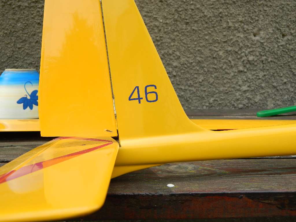 Dorobiłem parę brakujących szczegółów, haczyki do spinania płata, powiększyłem otwory w kadłubie, żeby mieściły się haczyki i przedłużacze serw......no i nadałem numer rejestracyjny w swoim "rejestrze" :) . Dodatkowo pojawiła się naklejka z logo forum ADW.