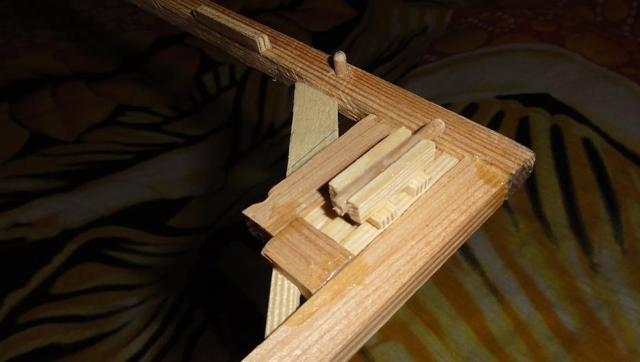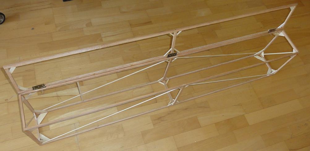Następnie powstają dwie wersję - pierwsza (obecna) i druga z wzmocnieniami które naszkicowałeś (proporcje wzięte z rysunku). Nie mogą one być całkiem pełne, ponieważ w narożnikach znajduje się klej łączący "główne elementy". Ale to bez znaczenia z punktu wytrzymałościowego. Przyjmuję grubość pełnego wzmocnienia taką samą jak grubość listewki pierwszej wersji