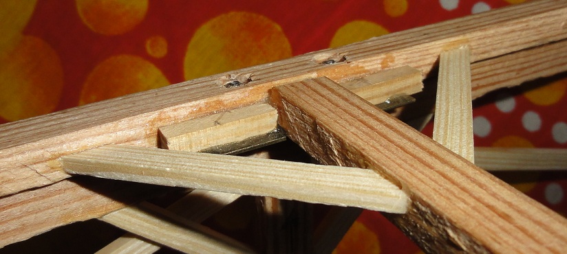 Dodatkowo, wklejając rozpórkę szeroko, robiłem to celowo aby ominąć listewkę ustalającą zawias przed przykręceniem. Wklejając tam pełny element, byłoby nieco problemu ze zmieszczeniem się poniżej górnego obrysu