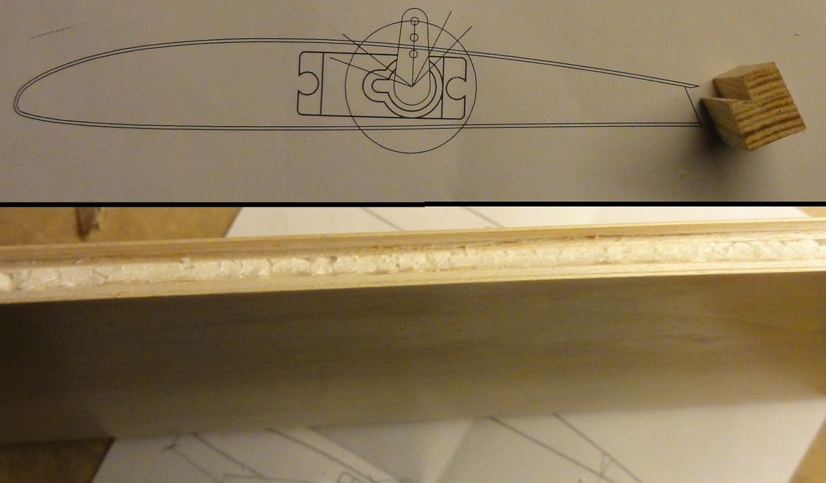 Do szlifowania zagłębienia, w które schowa się lotka, zrobiłem wzornik: