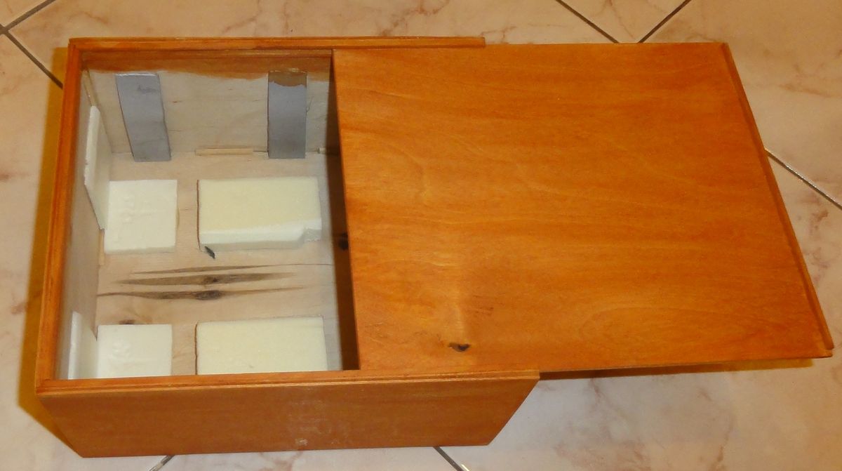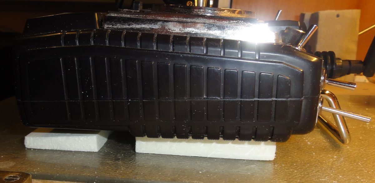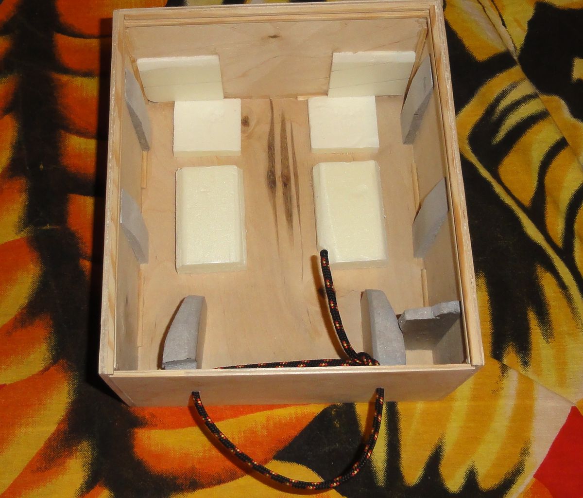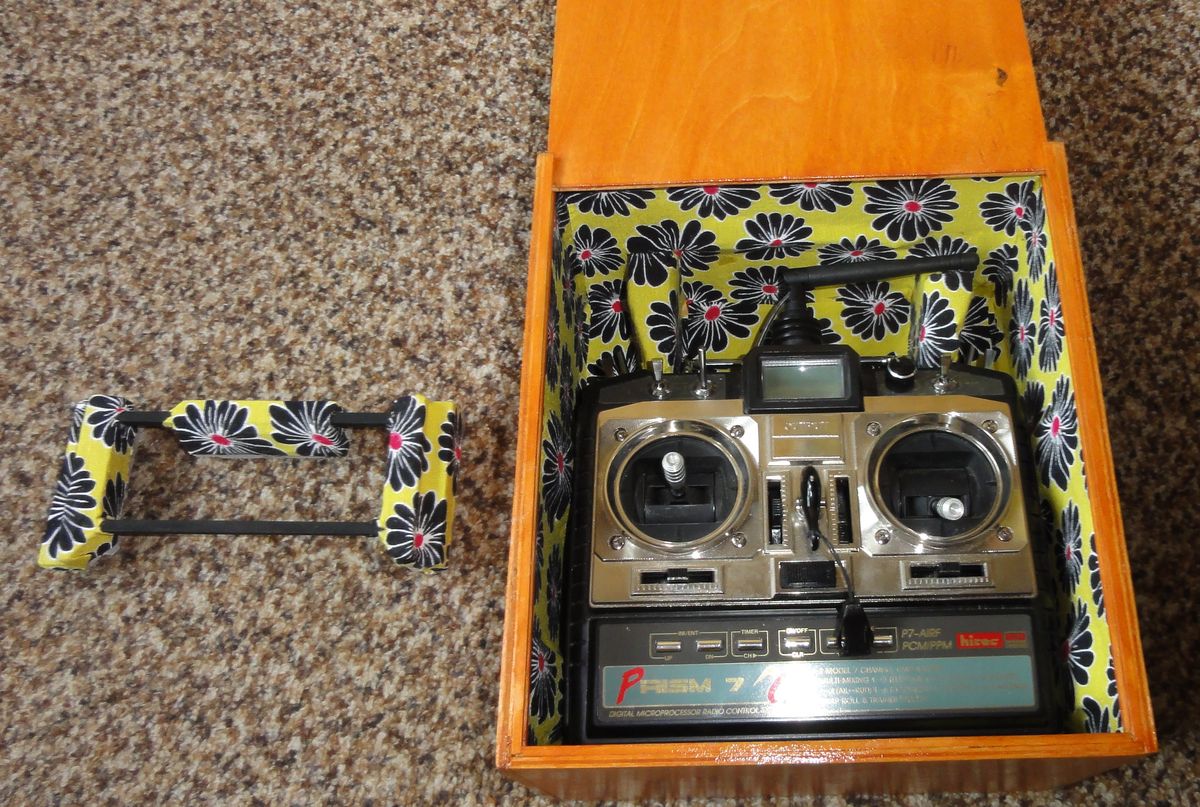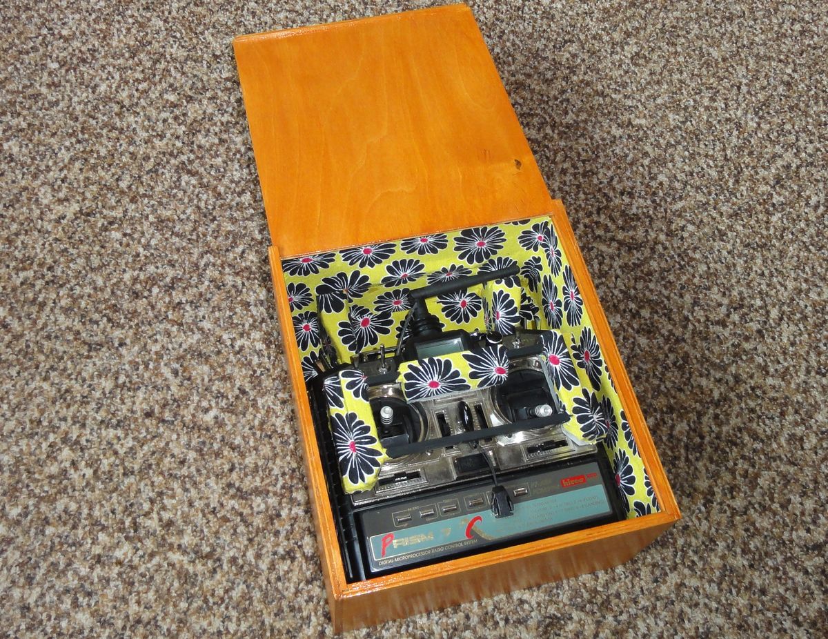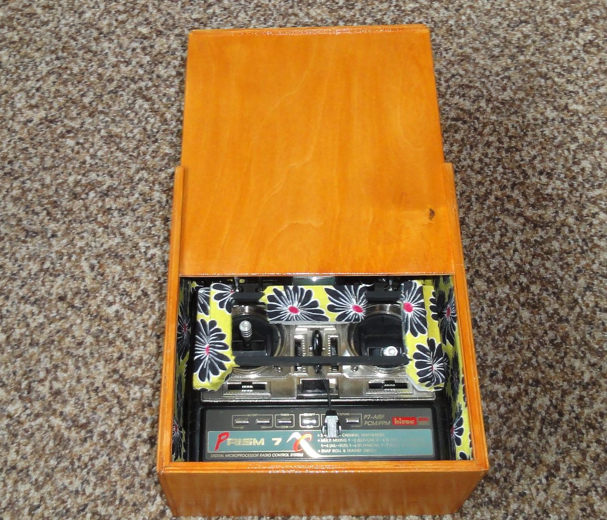 Podczas wyjazdów np. na lotnisko, zawsze muszę szczególną uwagę zwracać na nadajnik. Aby nic na nim się nie opierało, aby na drążki nic nie naciskało, aby przełączniki nie przestawiały się itp. Fabryczne pudło jest zbyt duże a wycięcie tylko górnej tylko części styropianu celem ochrony nie do końca mi pasuje. Można kupić gotowe skrzynki i zaadaptować je ale ja postanowiłem wykonać coś takiego od podstaw. Materiał - sklejka pochodząca z lat 80tych