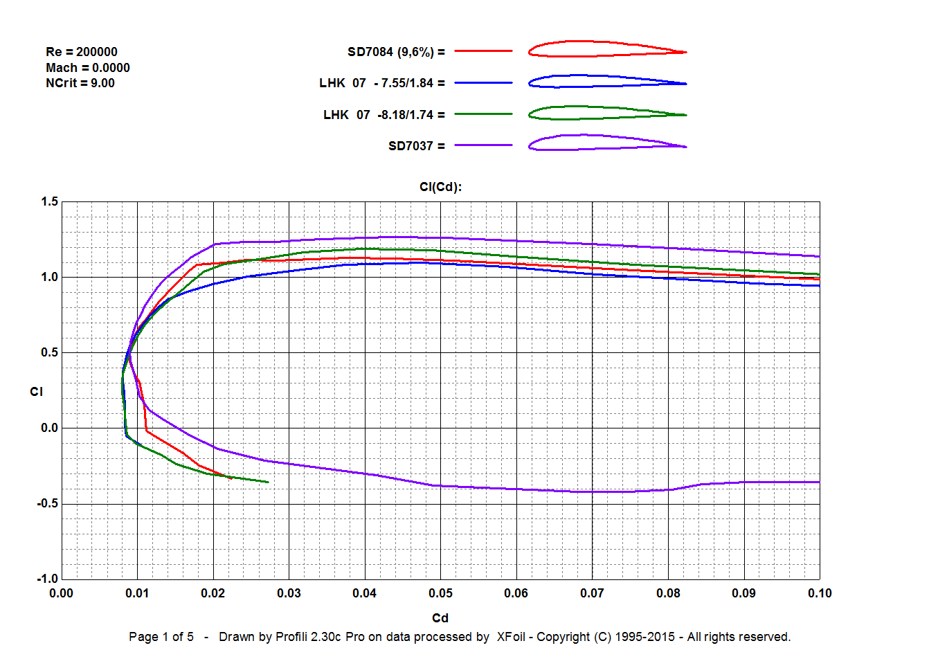 Powyzej Cl 0.5 SD7084/7037 wygladaja lepiej ale tez duzo gorzej ponizej 0.5. Male Cd ponizej 0.5 daje lepsze penetrownie pod wiatr i mniejsze opadanie. SD7037 nie bralbym pod uwage, za duzy opor.