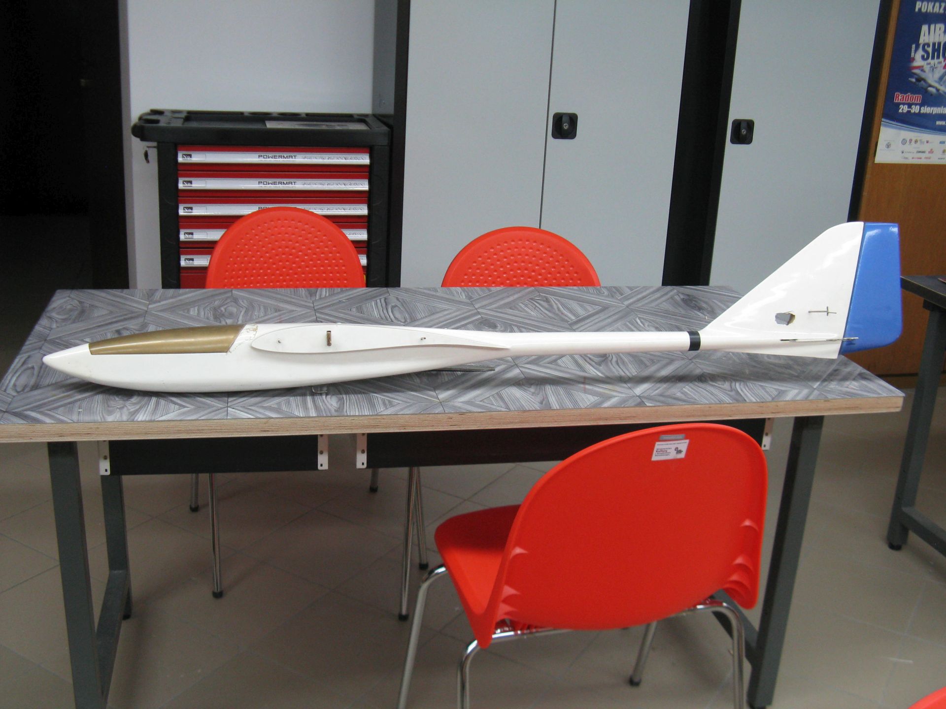 Profil usnps 3 10 %, dźwigary sosna 12x3, pomocniczy 5x5. Żebra z balsy 2 mm, podobnie kesony, spływ i nakładki na żebra. Łącznik z pręta utwardzonego fi 6 mm. Natarcie z dwóch warstw balsy: 3 mm i 8 mm. Szczegóły konstrukcji wkrótce.