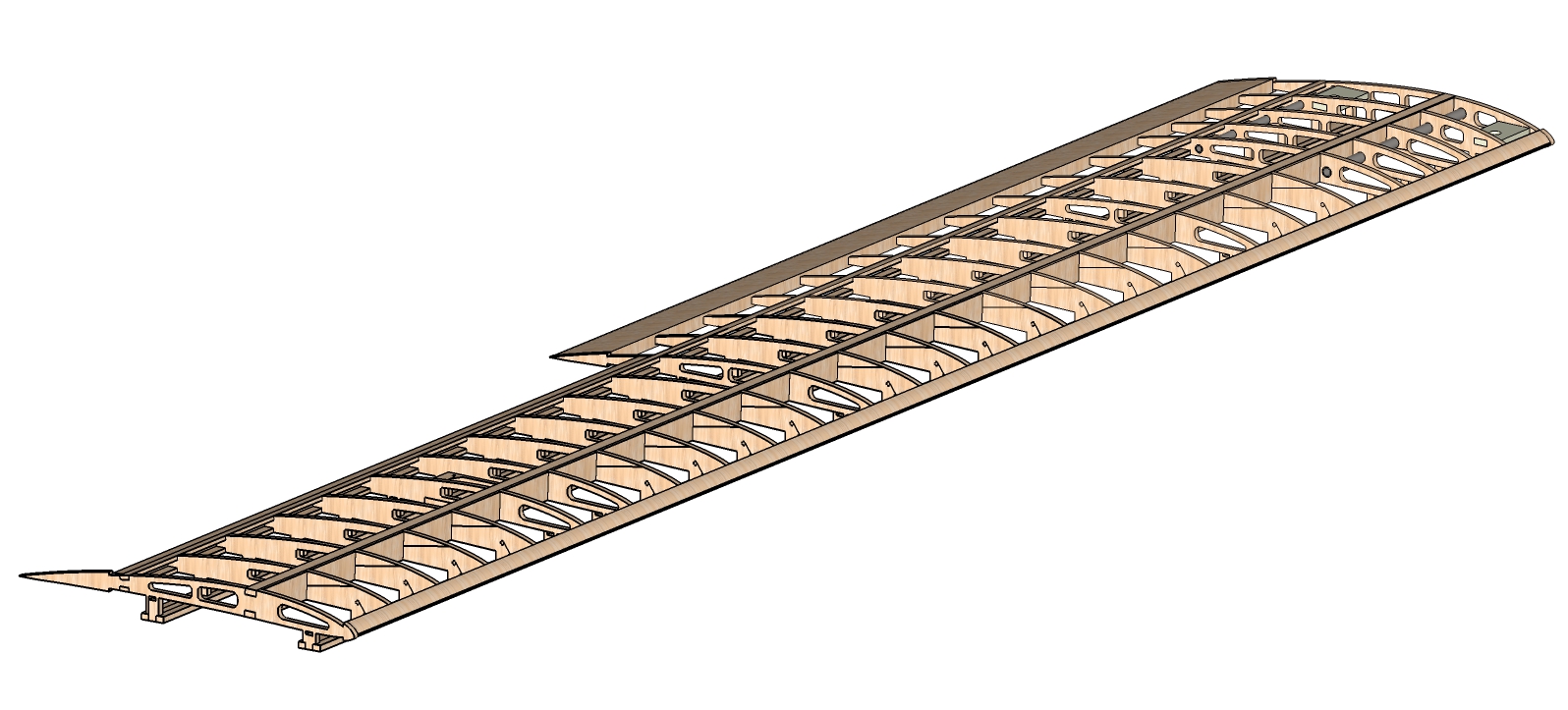 Rozrysowałem skrzydło do końca. Lotkę i spływ nie ma sensu ciąć laserem.