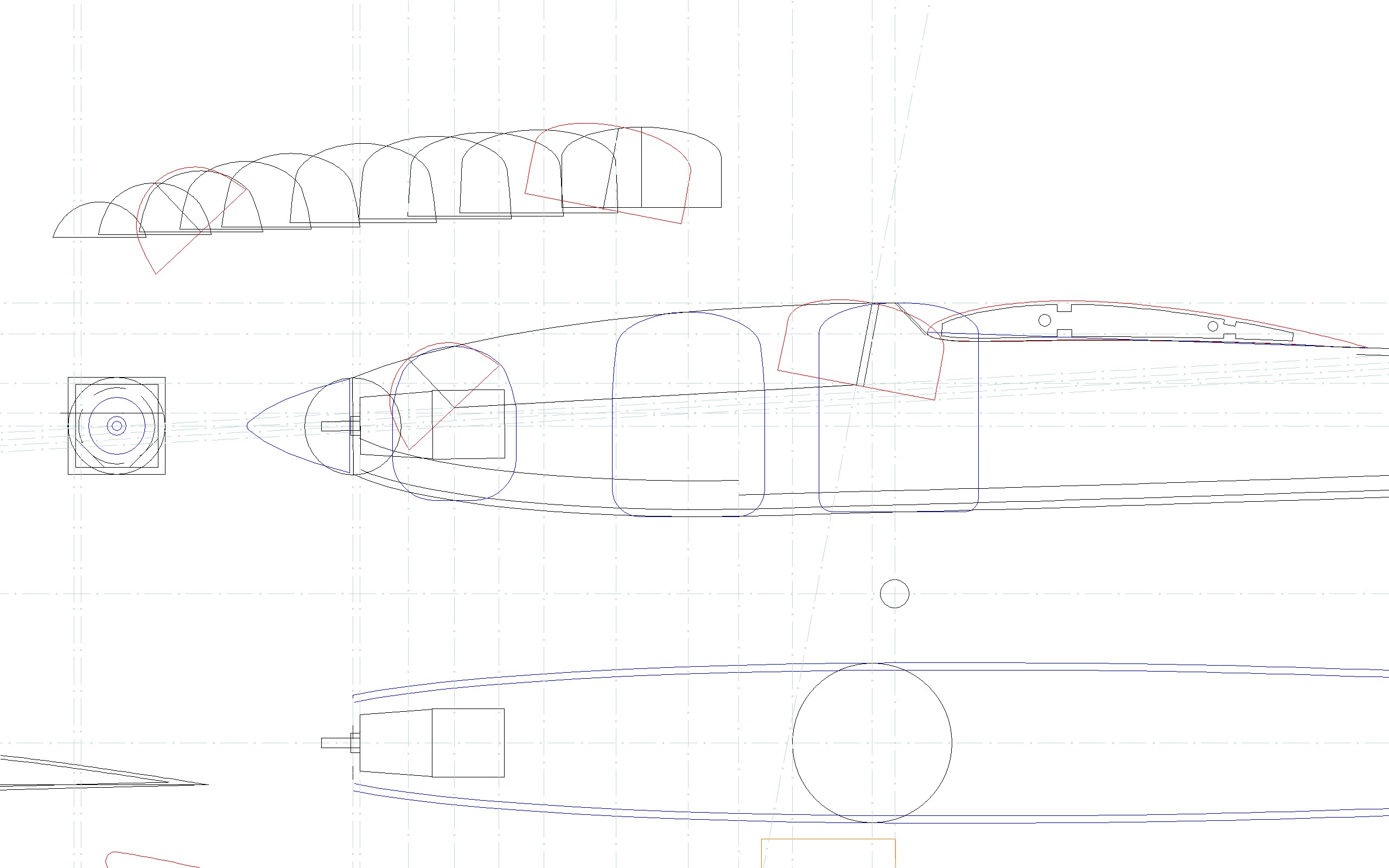 Rozrysowałem dziś kabinę i przekroje przodu kadłuba. Przeróbka na moto nie jest taka prosta jak by się mogło wydawać.