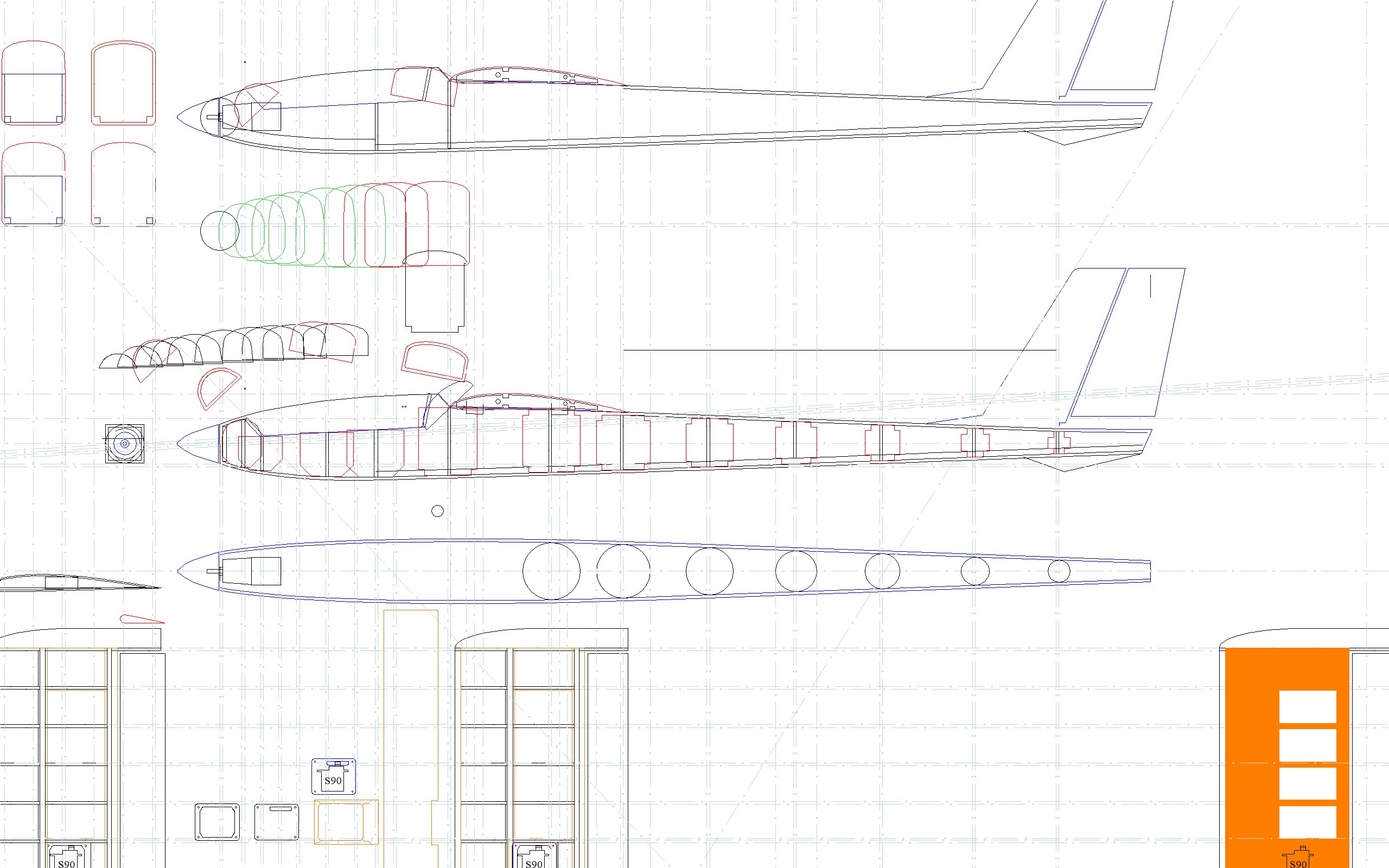 Zakupiłem niedawno książkę W. Niestoja "Zdalnie kierowane modele szybowców". Kiedyś, pod koniec lat 80-tych miałem taką ale gdzieś się zgubiła (sama...) Jest w niej projekt szkolnego szybowca, chciałem taki zbudować w tamtym okresie ale z różnych przyczyn było to niemożliwe. Wspomnienia wróciły, możliwości są więc wzorując się na tym projekcie zacząłem rysować swój.