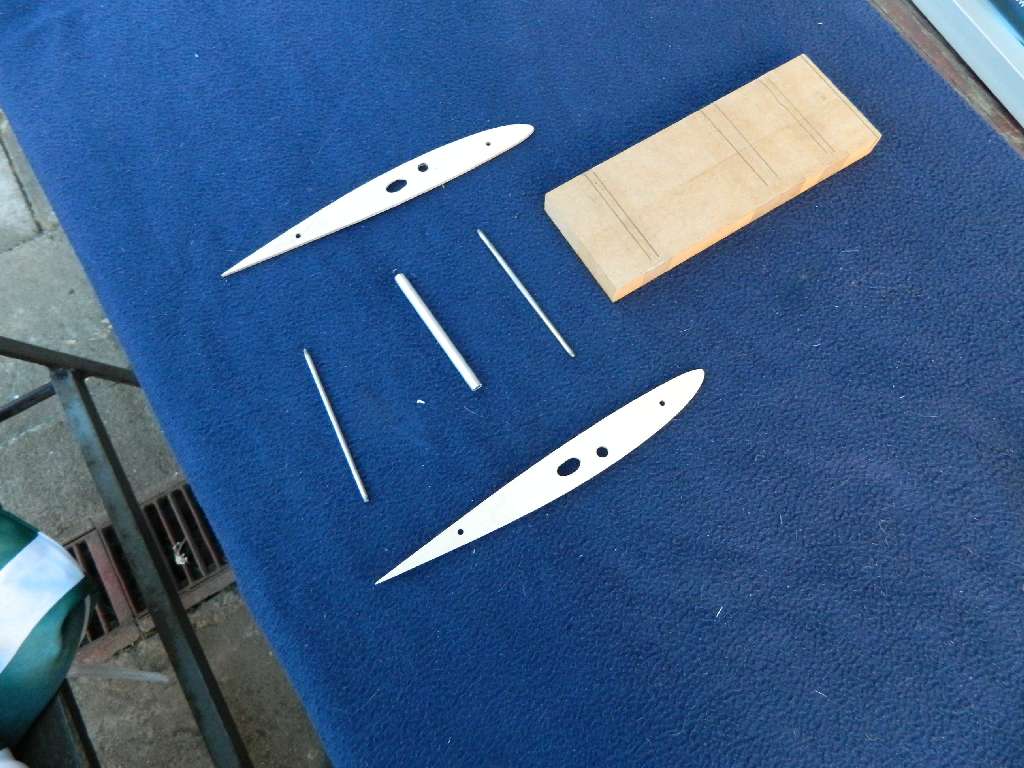 W formatkach żeberek do mAkro są wycięte żeberka kadłubowe ze sklejki 1 mm, w następnych będą z dwójki. Bierzemy te żeberka, rurkę alu fi 6/5,1, i dwa pręty stalowe fi 3 mm. Przygotowujemy sobie klocek, na zdjęciach z mdf, to będzie klocek montażowy naszego centro. Klocek ma 70 mm szerokości, taki rozstaw żeber przyjąłem. Składanie centro robię na bazie kołków centrujących fi 3 mm.....doklejam na CA kawałki listewek, aby ustabilizować względem siebie żebra i żeby wszystko było prosto. Pręty i rurka będzie znajdowała sie w "rynienkach" z listew sosnowych i balsowych.....będą zalane żywicą. Na koniec przymiarka platów do centro.....wszystko pasuje :)
