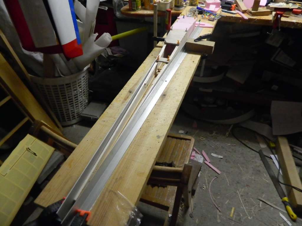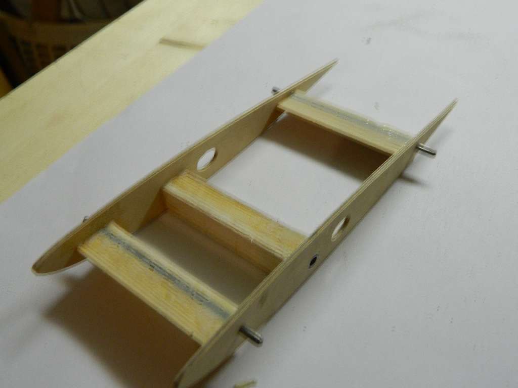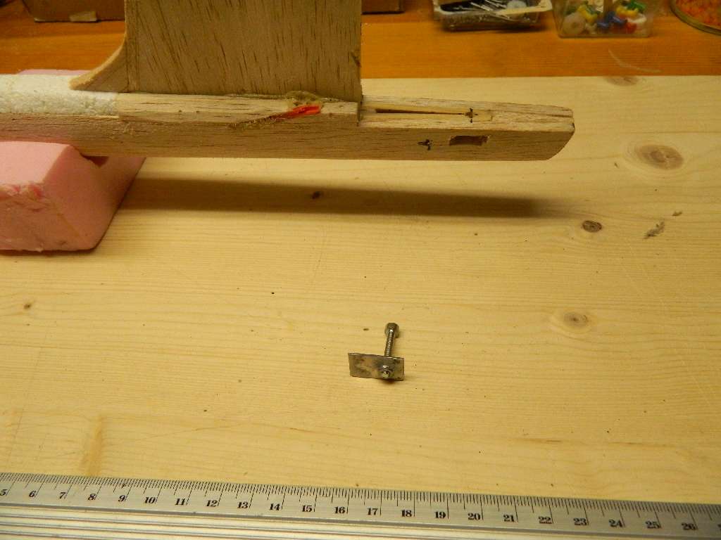 Popracowałem nad ogonem kadłuba.....wkleiłem oprofilowanie pionu i polutowałem mocowanie poziomego. Składa się ono z blaszki stalowej 1,2 mm i przylutowanej do niej nakrętki M3. Ten element będzie wklejony pod podłużnice sosnowe na końcu kadłuba.