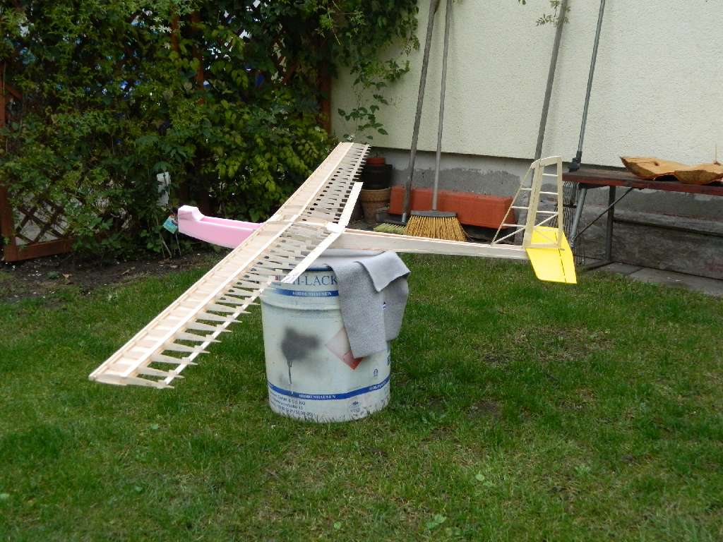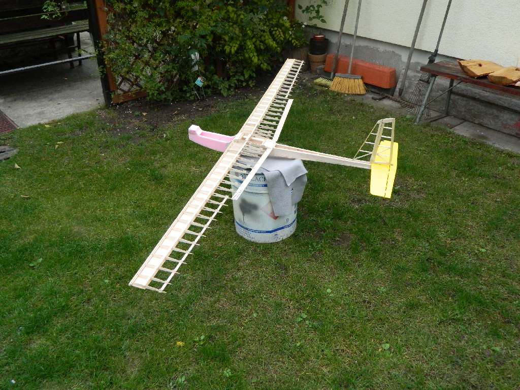 I gotowy element, sztywny, mocny i stabilny. Jak polączyć go z kadłubem i ustawić kąty....to pokażę przy okazji budowy kadłuba. Rurka i pręty stalowe zalane jakąś żywicą distalowatą.