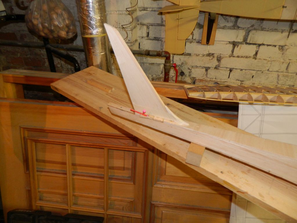 Zamknąłem kadłub od góry i "obrobiłem" pionowy u podstawy, wcześniej powklejałem bowdeny.