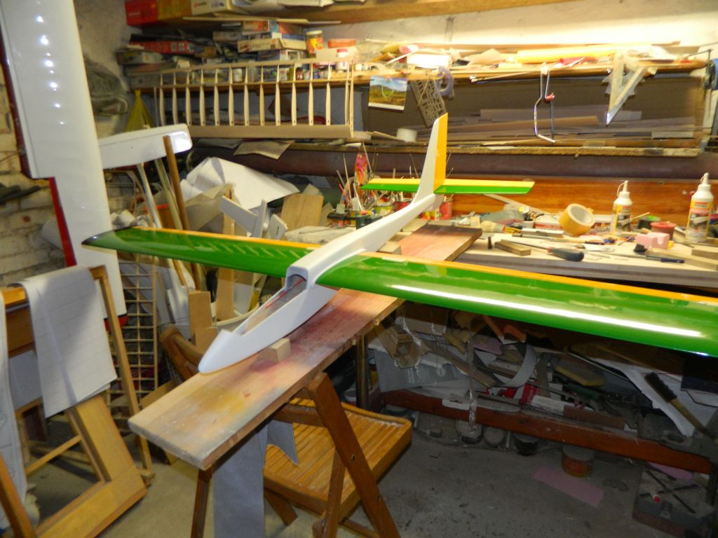Dzisiaj odwiedziłem mieszalnie lakierów....po krótkiej debacie i porównaniu ze wzornikami kawałka zielonej folii, Pan lakiernik zniknął na zapleczu ;) . Po powrocie do domu szybko okleiłem kadłub i do garażu....efekt na zdjęciach :) . Na razie schnie, trzeba jeszcze spolerować i wyrównać przejście kolorów. Odcień wydaje mi się być bardzo dobry, ale będzie można coś bliżej powiedzieć dopiero przy dziennym świetle.
