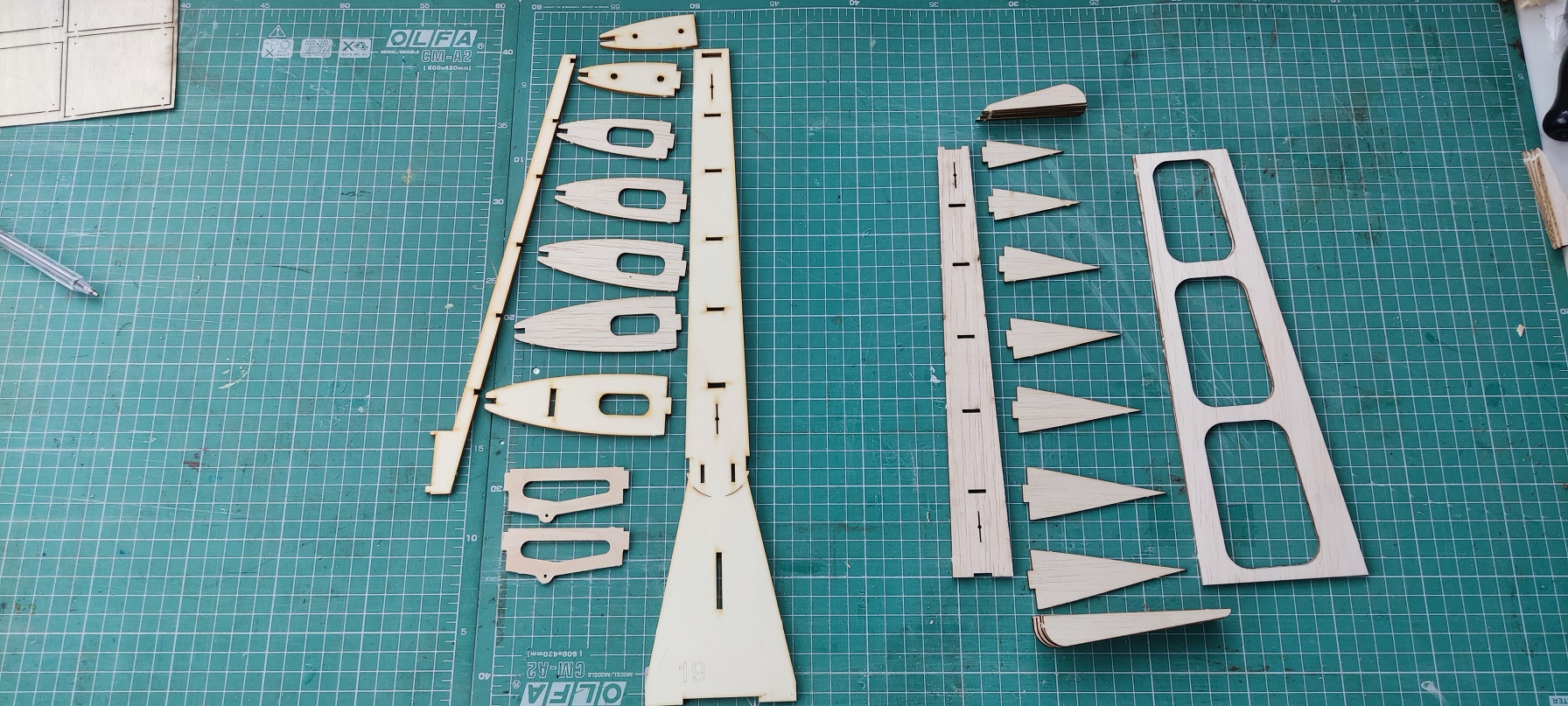 Wszystkie elementy potrzebne do budowy statecznika pionowego jak i steru kierunku