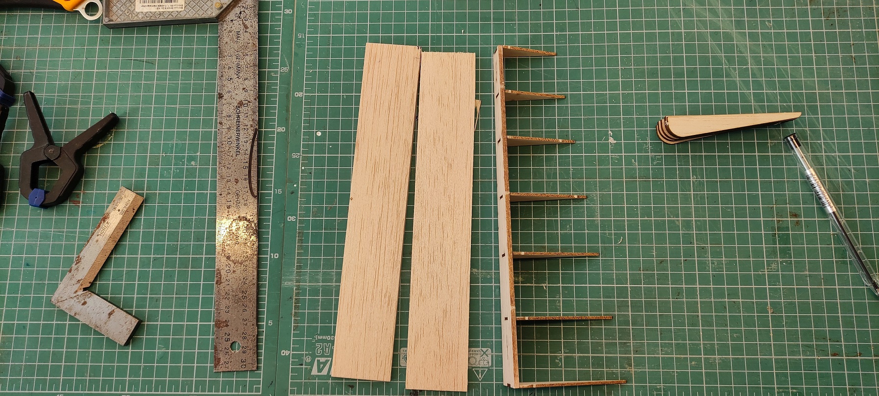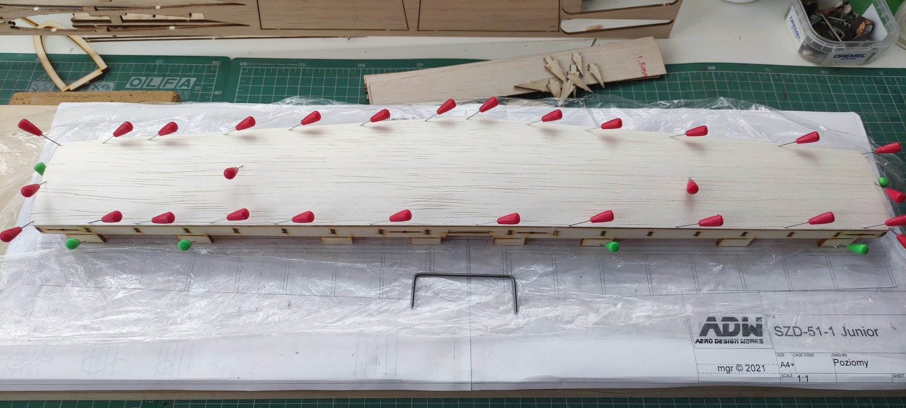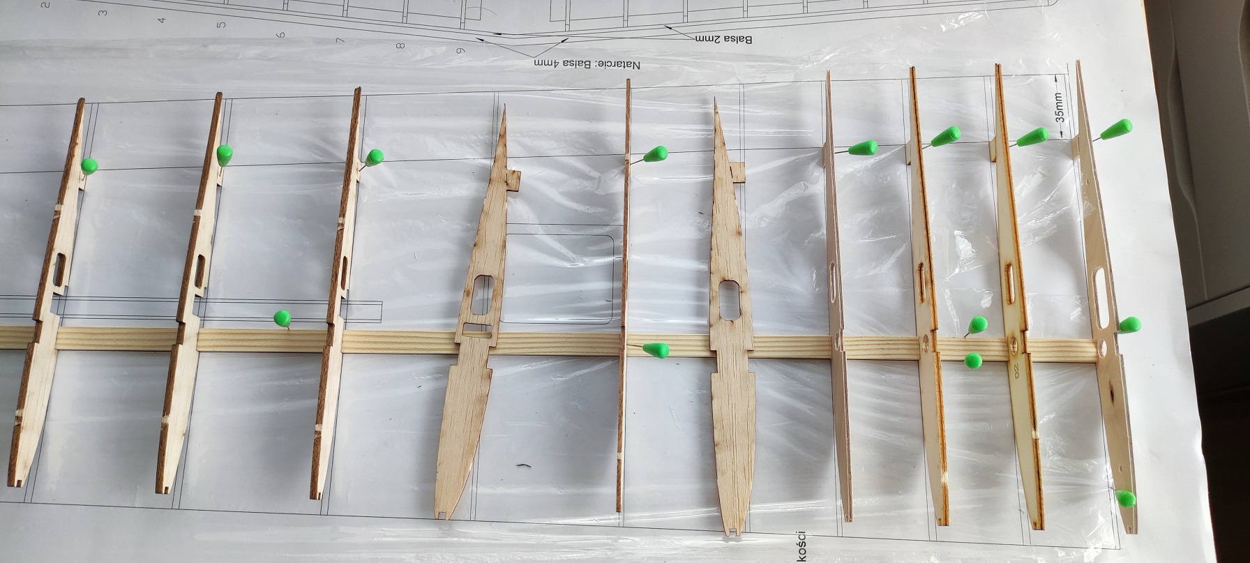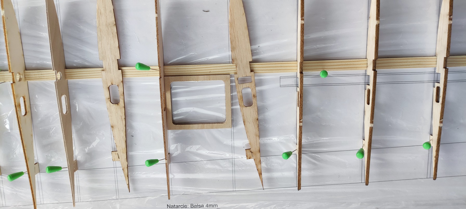 A tu widoczne paski balsy 5mm - natarcie które będzie szlifowane w trójkąt.