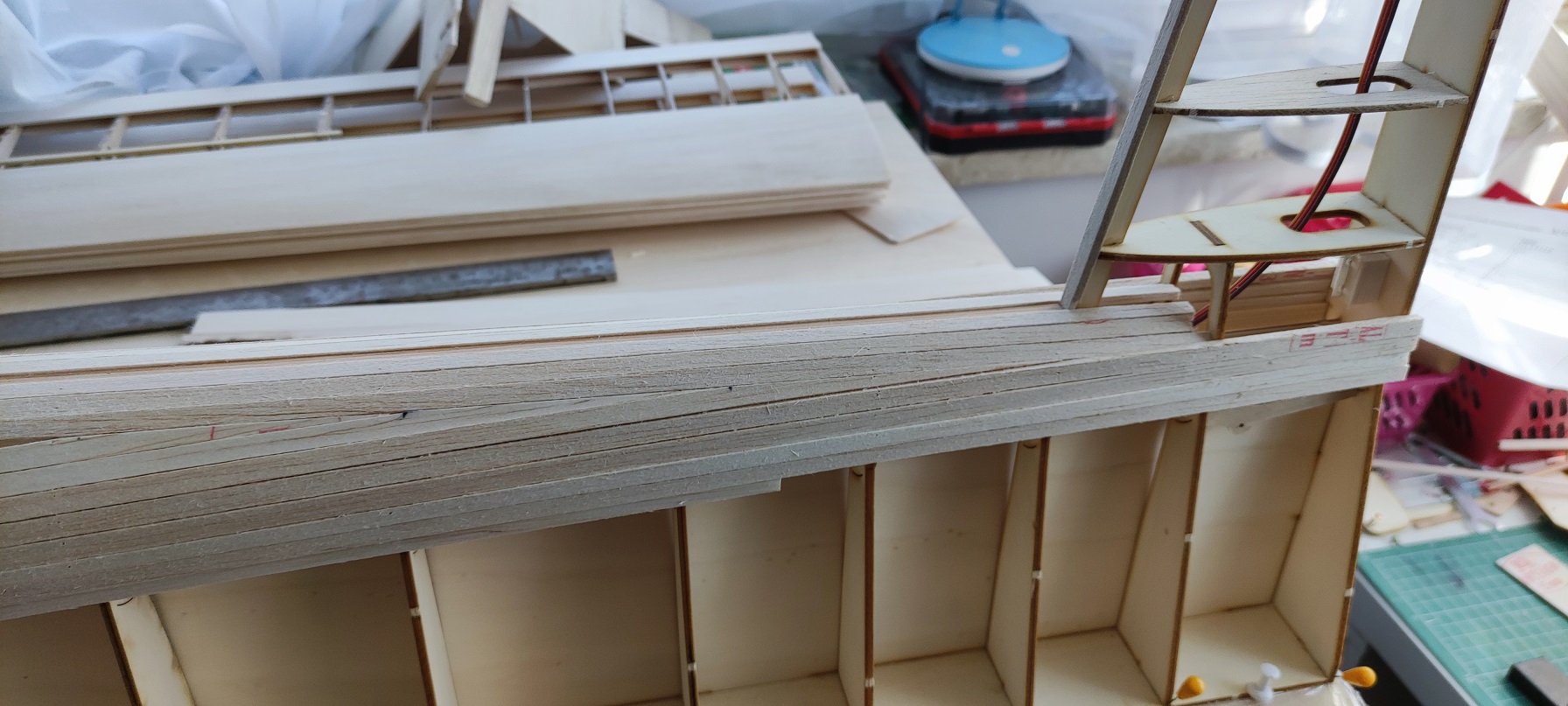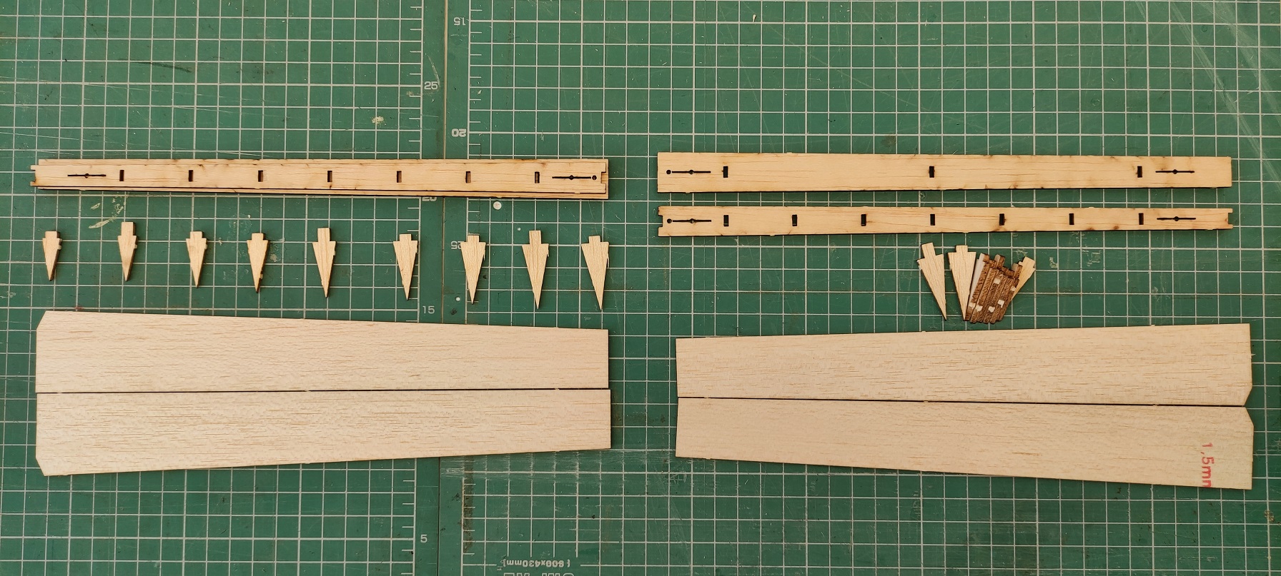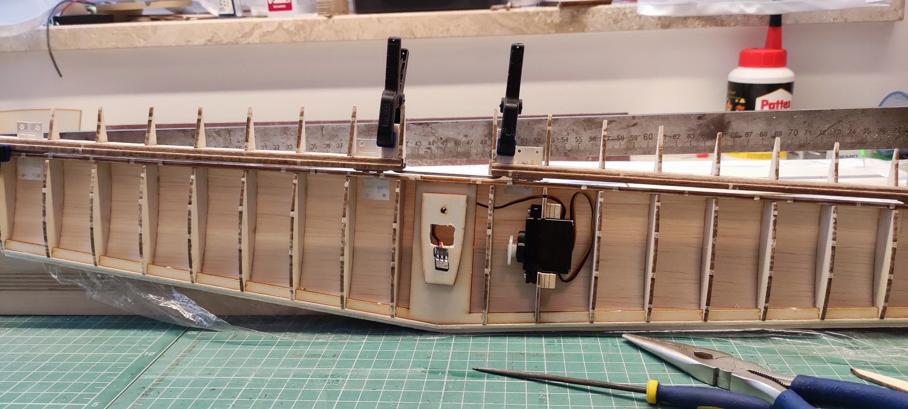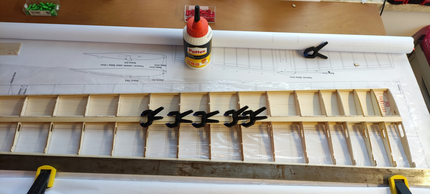 A tu widoczne paski balsy 5mm - natarcie które będzie szlifowane w trójkąt.