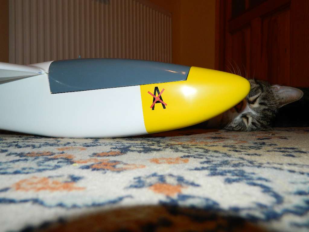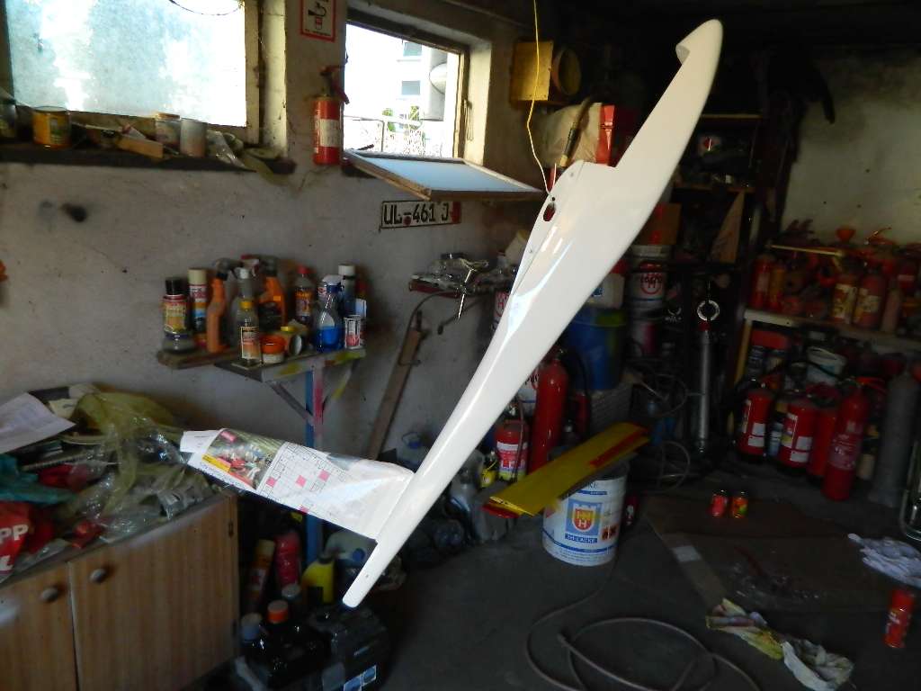 Może kilku użytkowników forum ta wiadomośc zainteresuje, "38" naprawiony. Naprawa, po krecie w wykonaniu ucznia, obejmowała naprawę złamanego płata, połamanego sk, zmiażdżony przód kadłuba i kilka mniejszych uszkodzeń. Podczas remontu zmieniłem troszeczkę przód kadłuba, komorę balastową, wydłużony i zalaminowany z resztą kadłuba. Wydłużenie ok 2 cm. Nowe pokrycie sk, i pomalowany na żółto naprawiony przód kadłuba. Oczywiście nowy łącznik płatów, poprzedni uległ wygięciu.