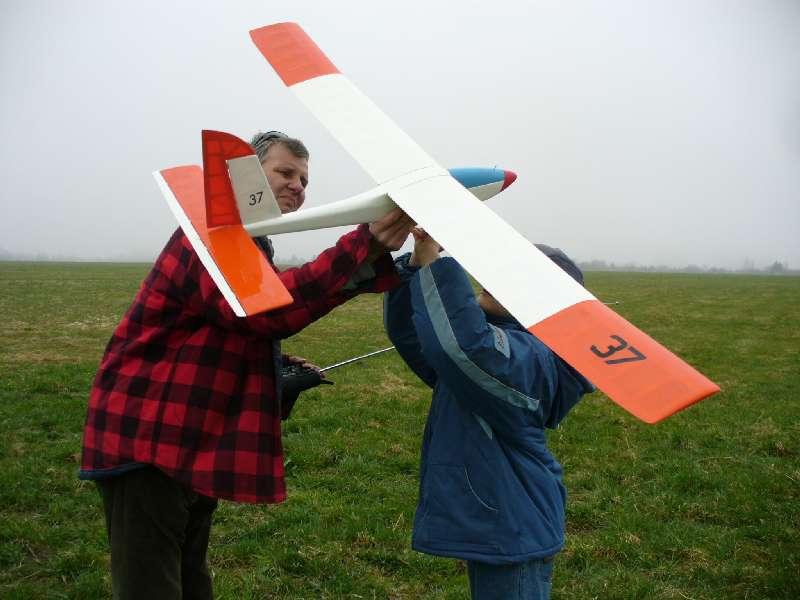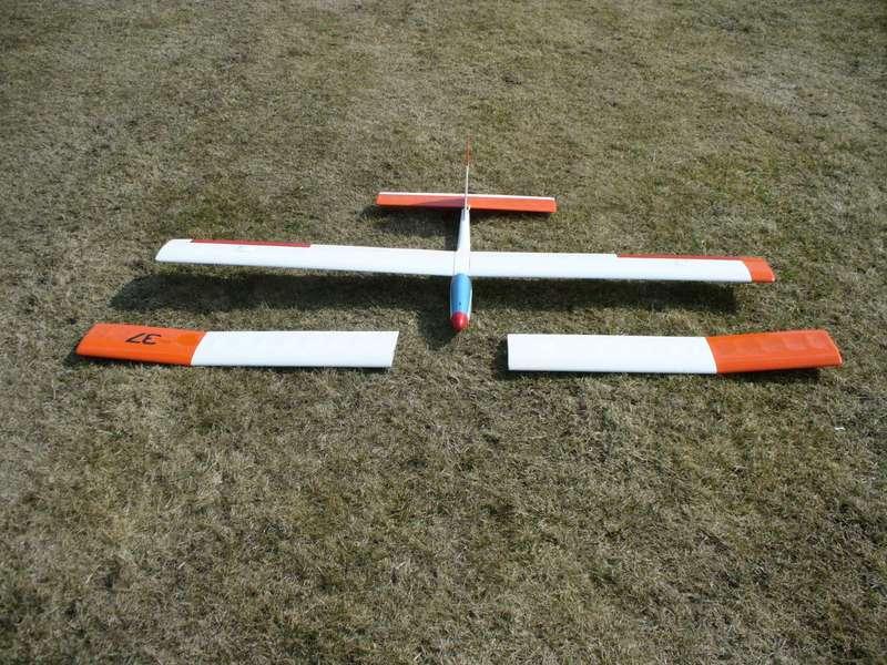 Na początku szkoliłem na szybowcu "37". Model ze sterem kierunku i wysokości. Moi uczniowie zrealizowali na nim cały program szkolenia. Niestety, w wyniku awarii elektroniki, uległ rozbiciu. Kadłub nie był mocno uszkodzony, ale skrzydła nie nadawały się do naprawy. Właśnie do tego modelu budowane są płaty z wątku w "Elementarzu". Przyjęta przeze mnie koncepcja modelu szkolnego bez lotek chyba jest niewłaściwa, tak oceniam to z perspektywy czasu.