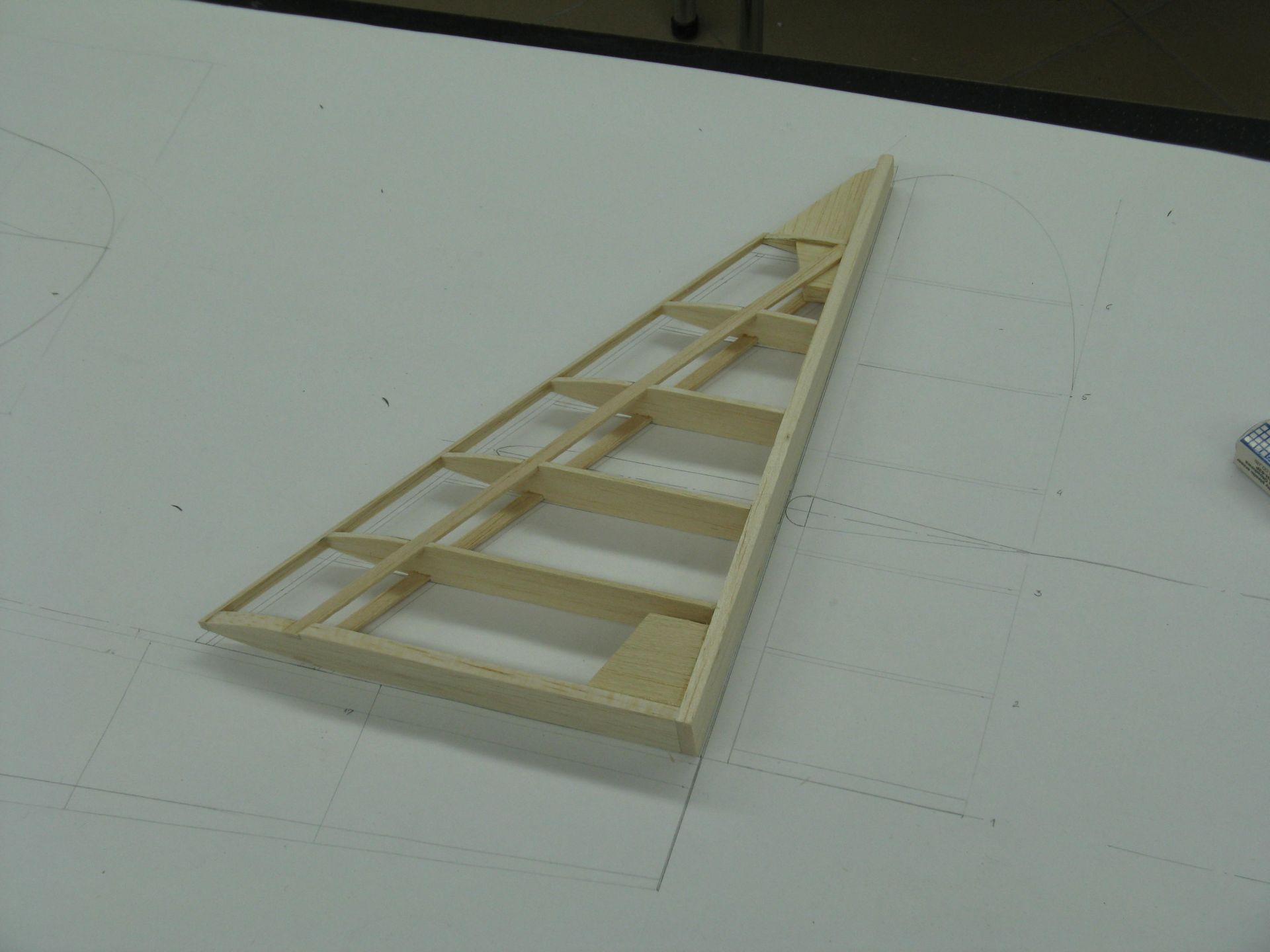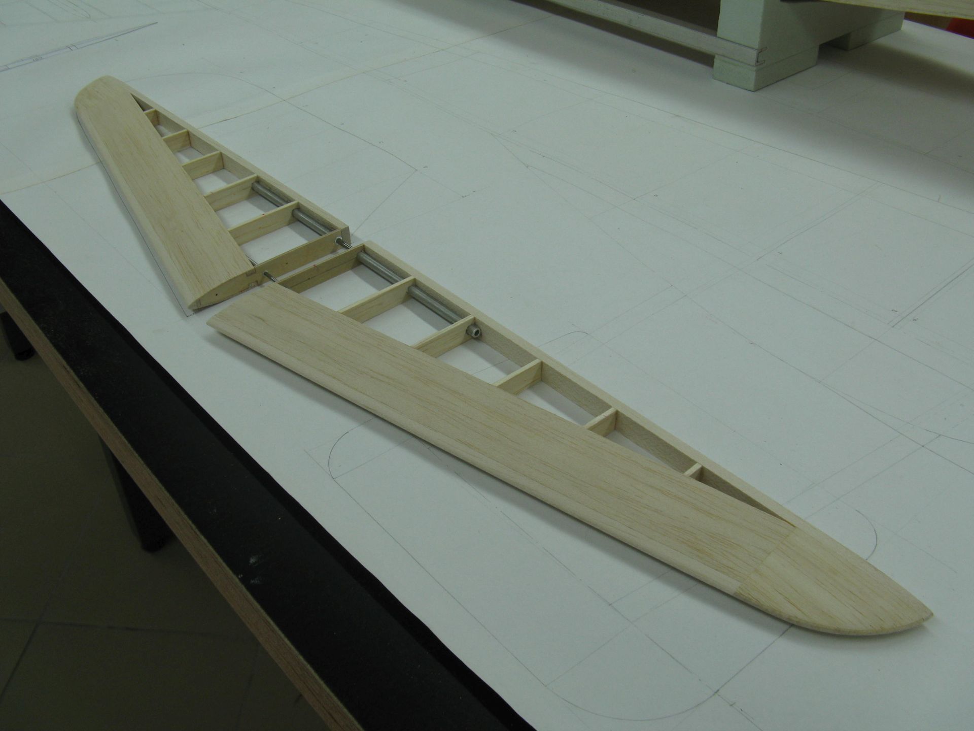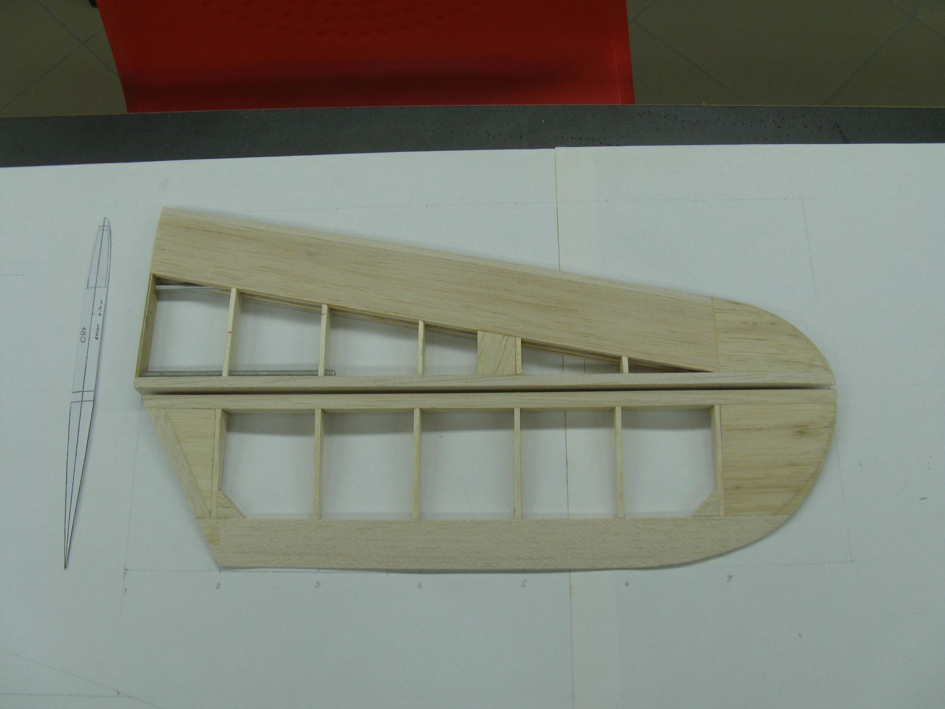 Statecznik poziomy jest całobalsowy. Natarcie i spływ - balsa 5mm, dźwigary 2X5.
