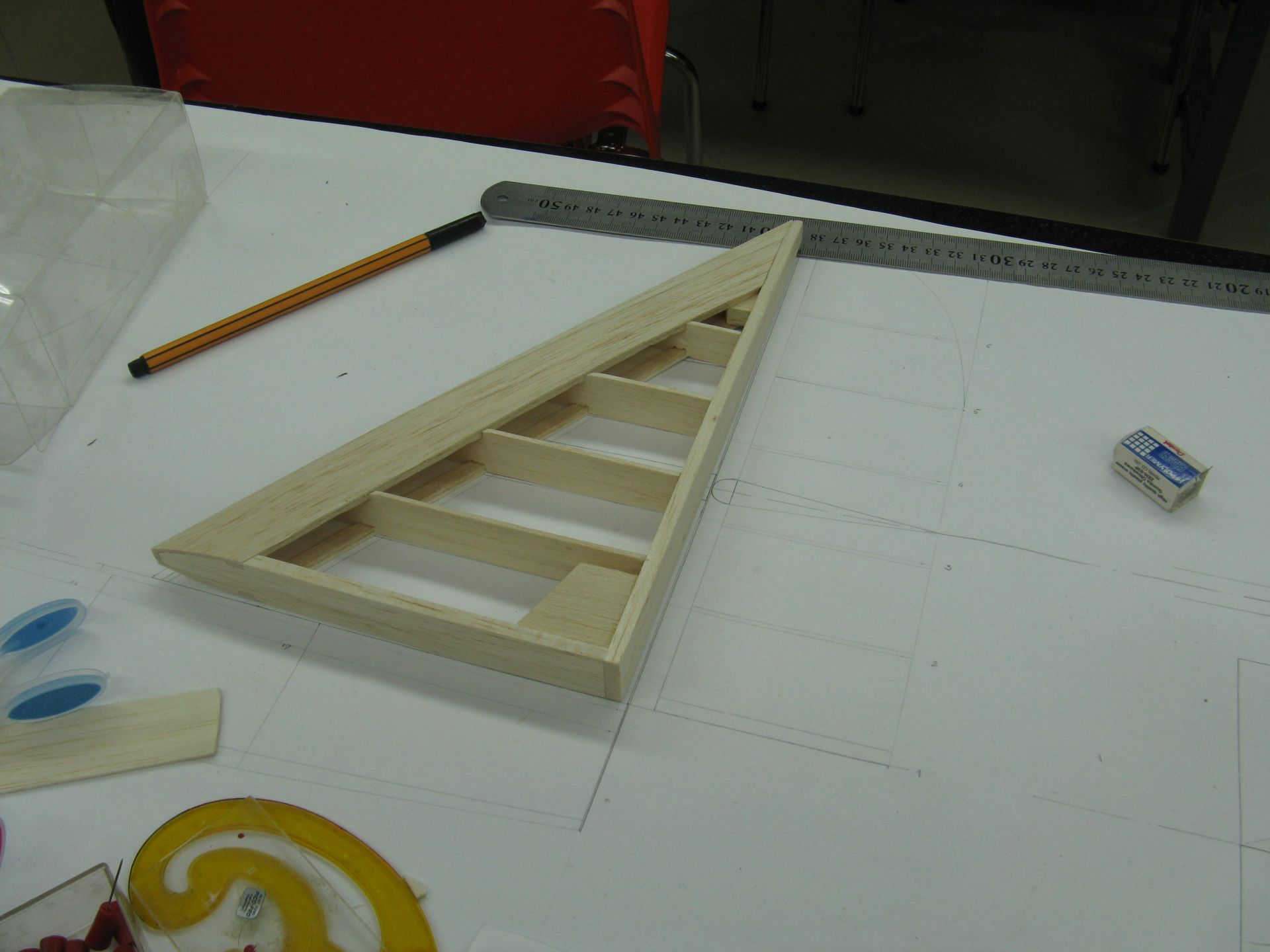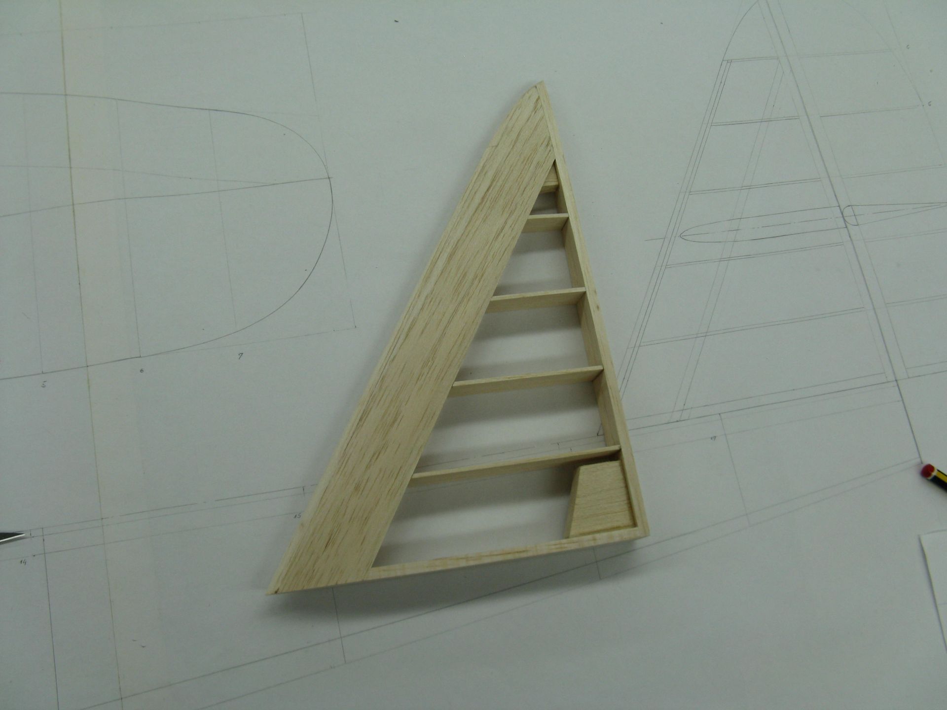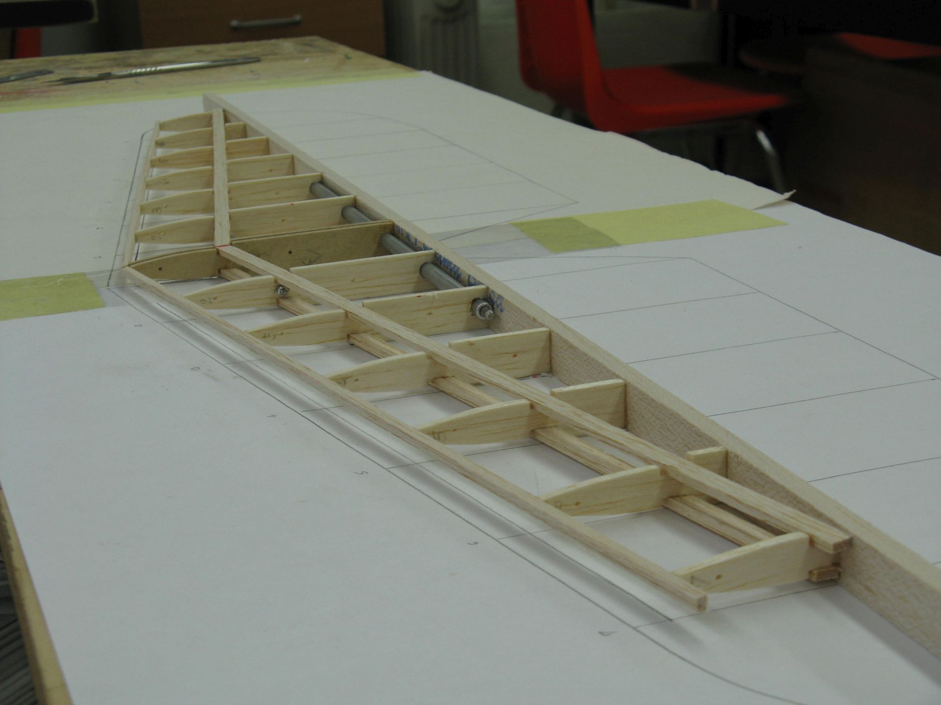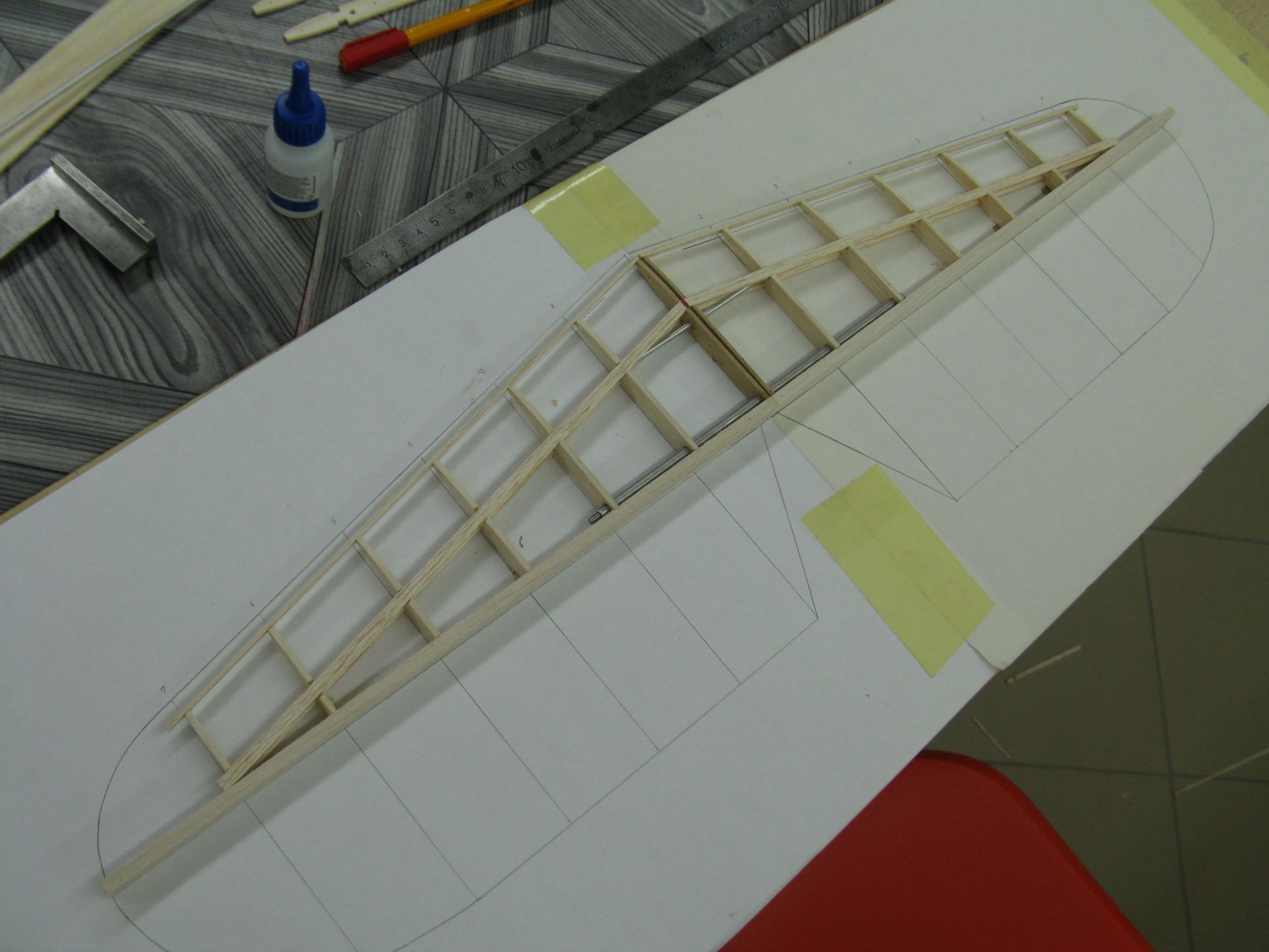 Statecznik poziomy jest całobalsowy. Natarcie i spływ - balsa 5mm, dźwigary 2X5.