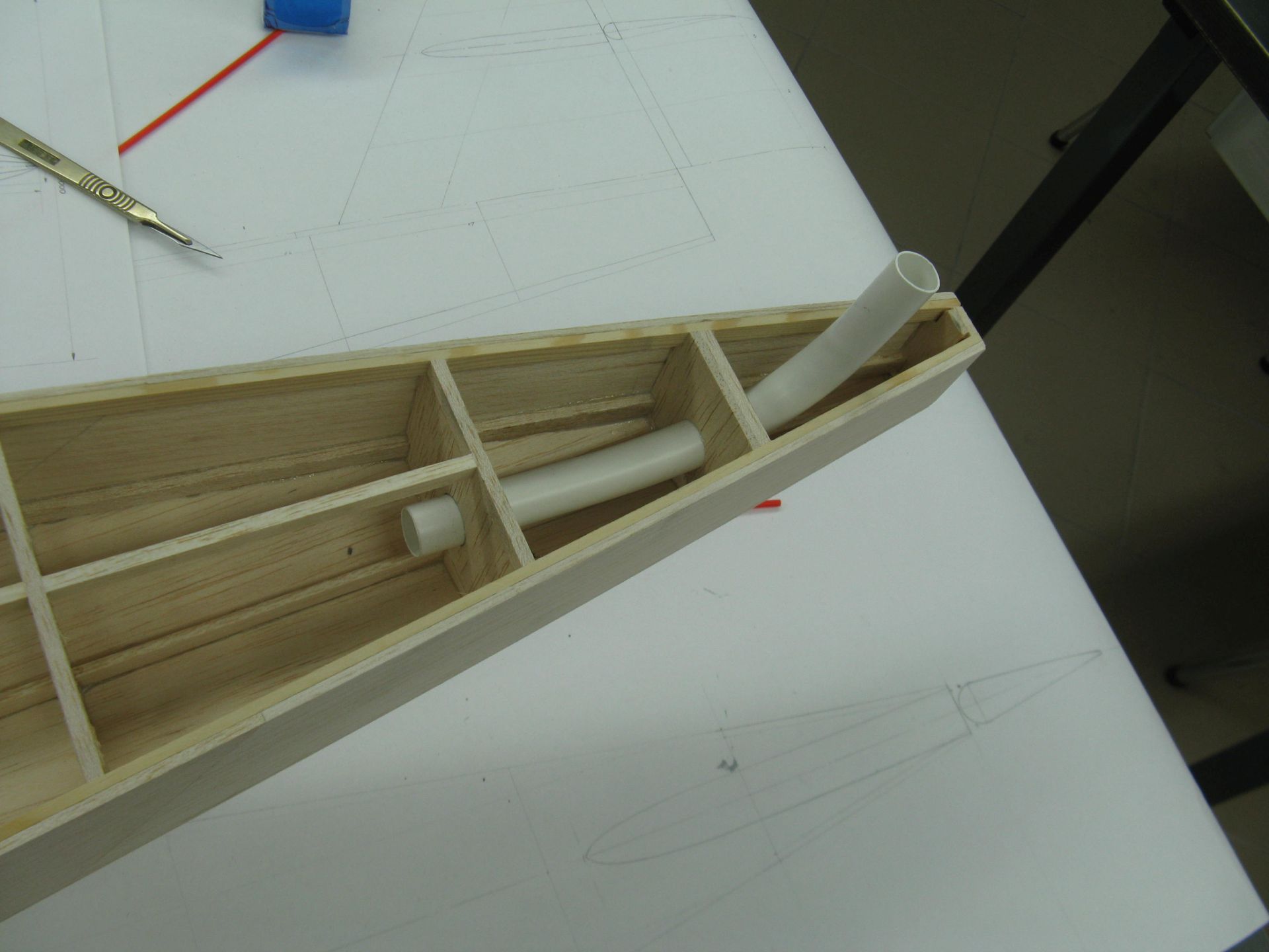 PZL-12 miał zamontowane do oblotu podwozie, więc postanowiłem zrobić podobnie. W kadłub wkleiłem klocki lipowe, w które wkleiłem rurki aluminiowe o wewnętrznej średnicy 3mm. W te rurki będzie wsuwane podwozie z drutu 3mm i blokowane przed wypadnięciem pierścieniami stalowymi takimi jak do mocowania kółek. Mam nadzieję, że zda to egzamin.