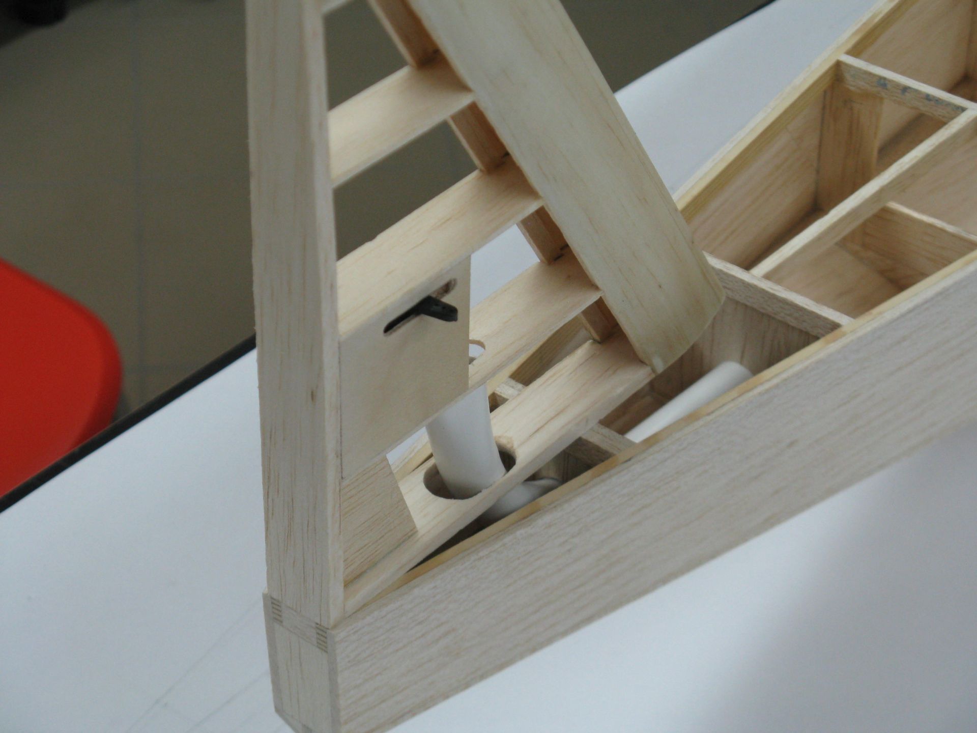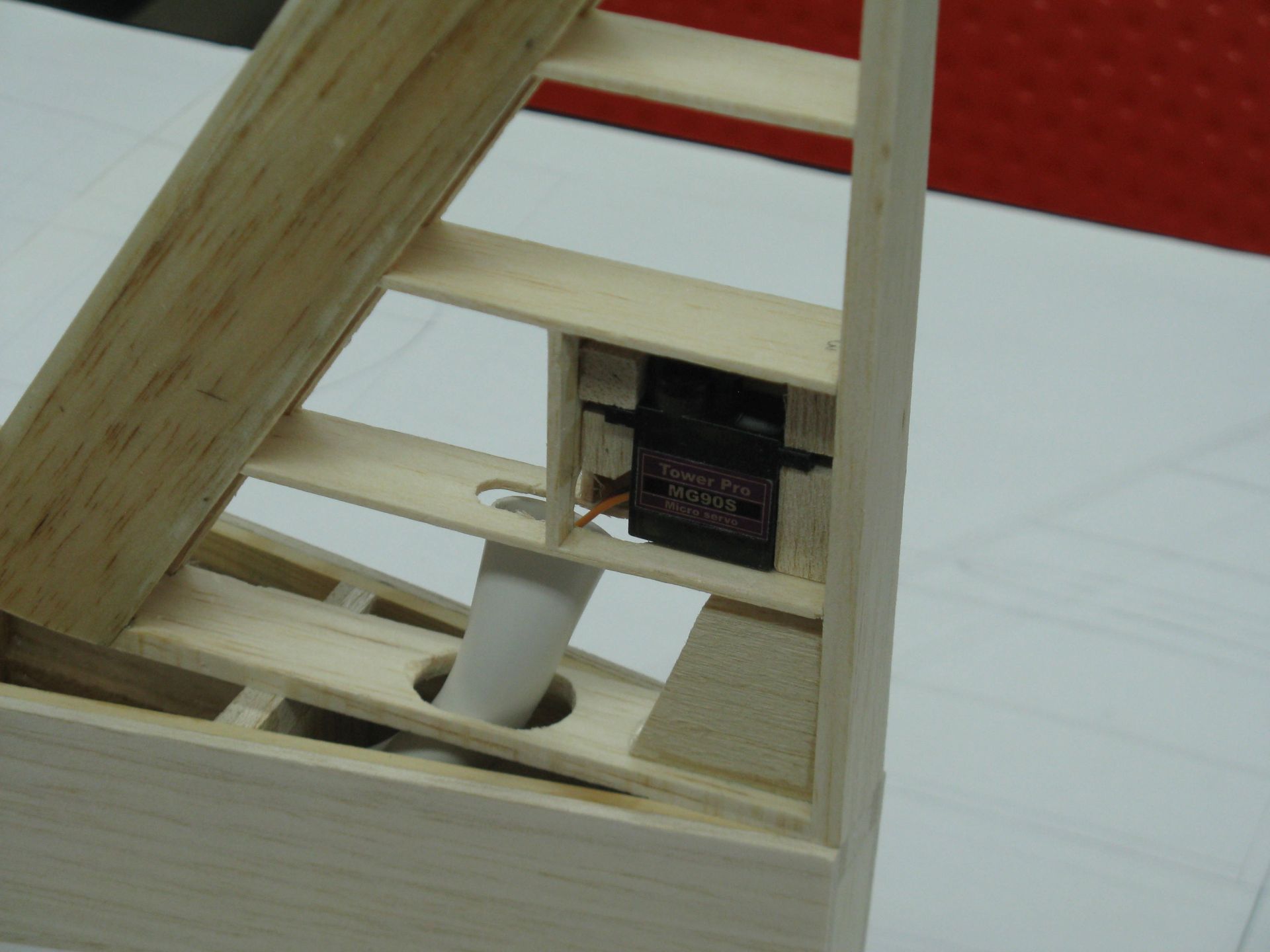 Serwo w ogonie jest tutaj jedną z opcji, ale chyba najlepszą. Zdecydowałem się na takie rozwiązanie, ponieważ proporcje modelu pozwalają włożyć w sam nos dość duży i ciężki akumulator 4S i kwestie wyważenia są przez niego całkowicie załatwione.
