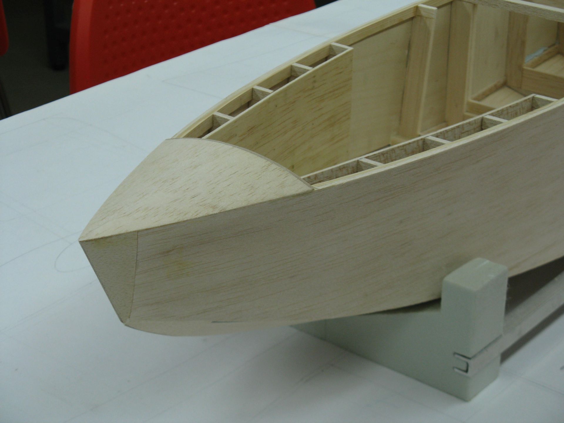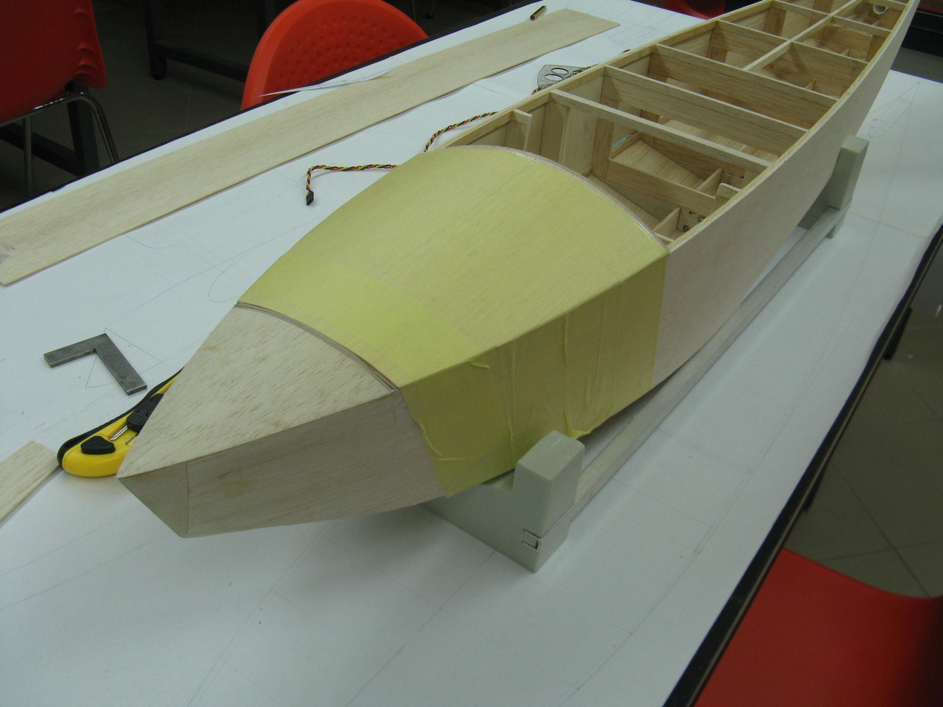 Oprofilowanie przodu kadłuba i zamocowanie serwa w stateczniku pionowym.