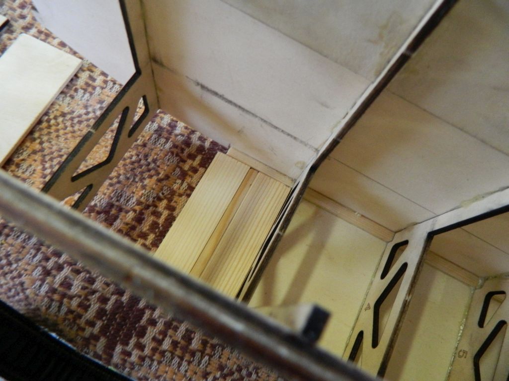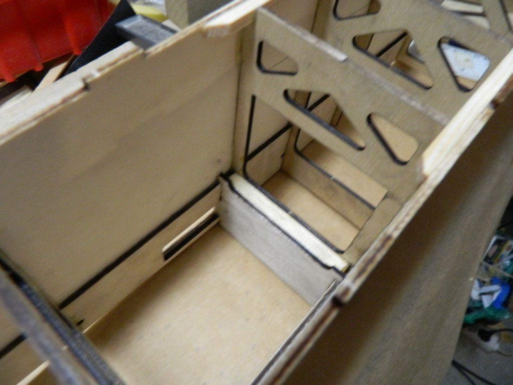 Do wewnętrznej powierzchni przedniej części kadłuba przykleiłem wzmocnienia ze sklejki. Wcześniej skleiłem dół kadłuba. Można powoli się brać za jego składanie.